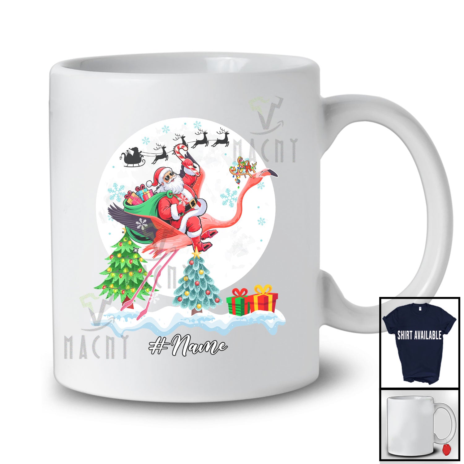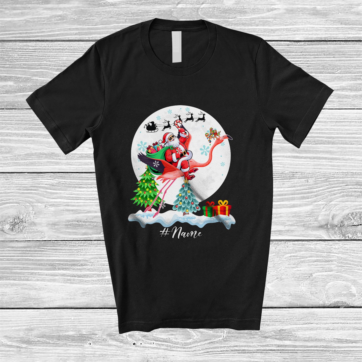 Personalized Custom Name Santa Riding Flamingo; Lovely Christmas Moon Wild Animal; Family T-Shirt