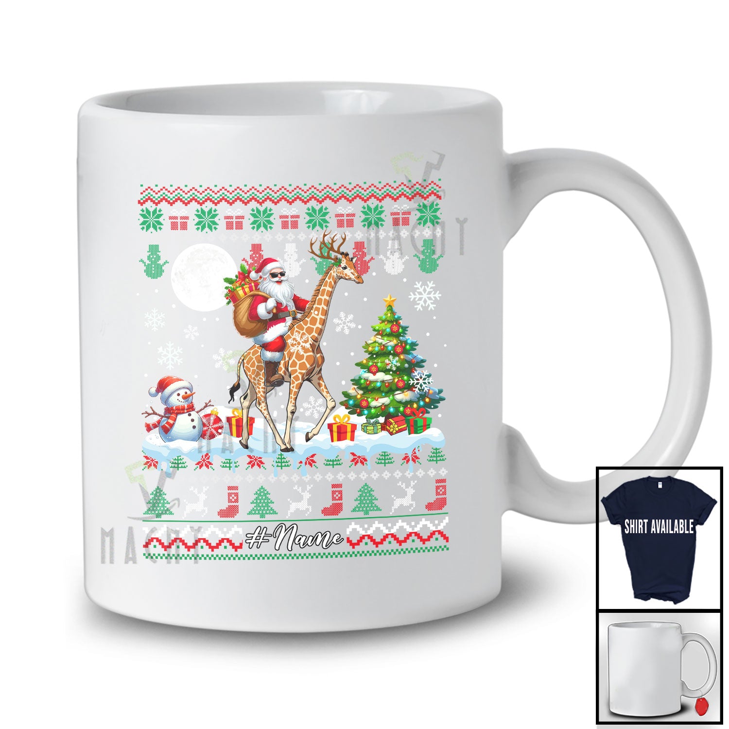 • Personalized Custom Name Santa Riding Giraffe Reindeer; Amusing Christmas Sweater Snow Animal T-Shirt. This cotton t-shirt is a durable staple product with a classic fit. One of the most popular items, it has a relaxed style made for everyday and casual wear.