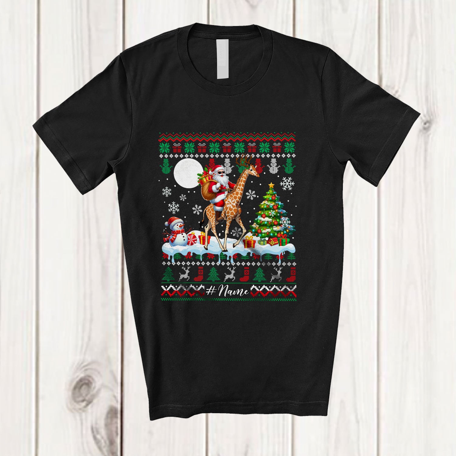 new MacnyStore - Personalized Custom Name Santa Riding Giraffe Reindeer; Amusing Christmas Sweater Snow Animal T-Shirt – Macnystore
