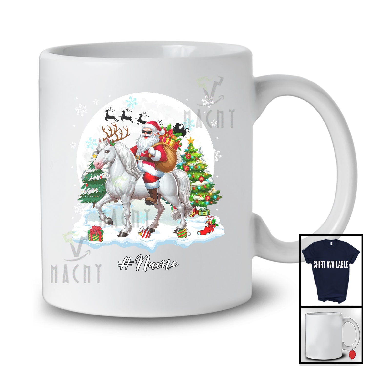 The Personalized Custom Name Santa Riding Horse Reindeer; Amusing Christmas Snow Animal T-Shirt is far and away, one of our most popular items. People can't seem to get enough of it.