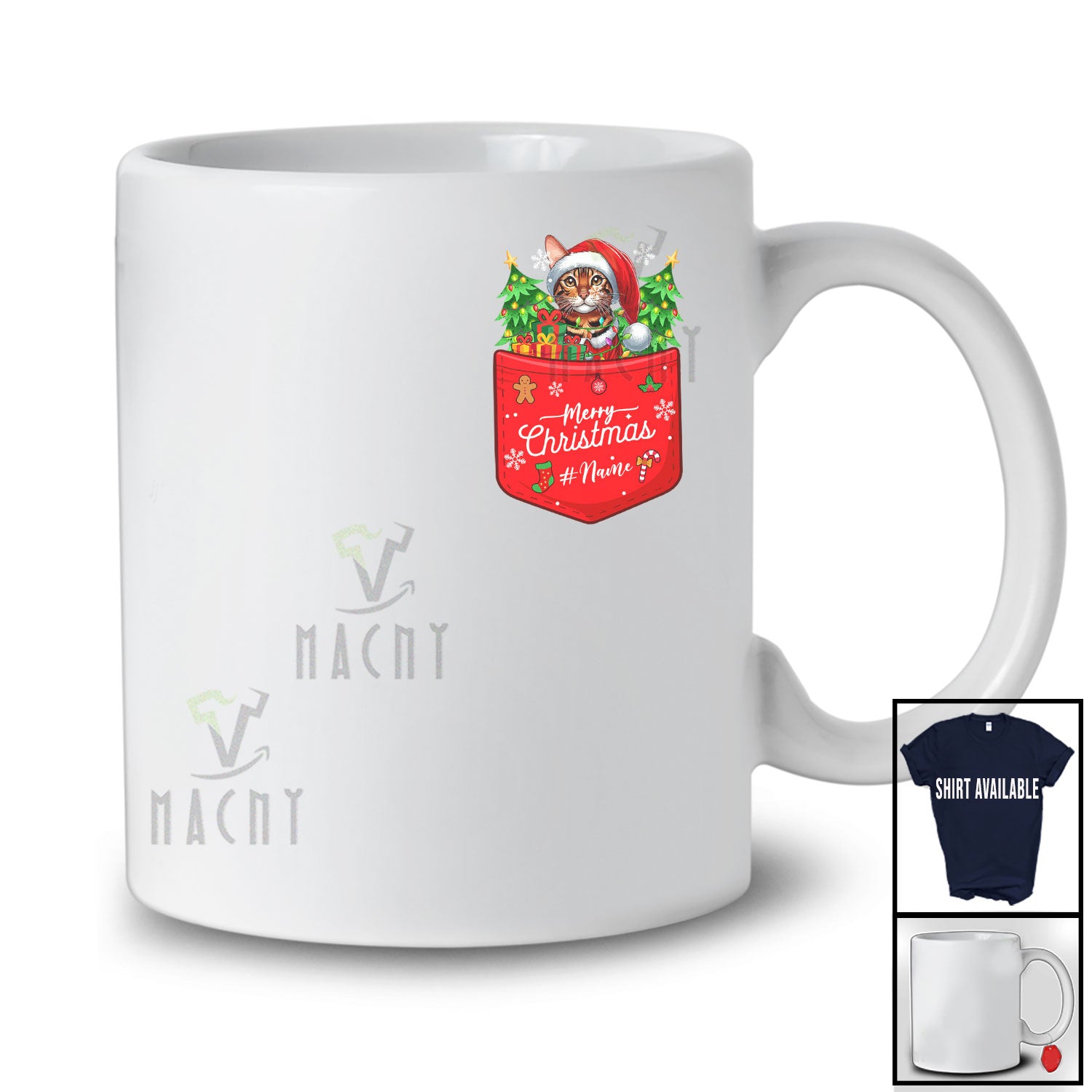 Personalized Custom Name Santa Russian Bengal Cats In Pocket; Fantastic Christmas Tree Cat T-Shirt