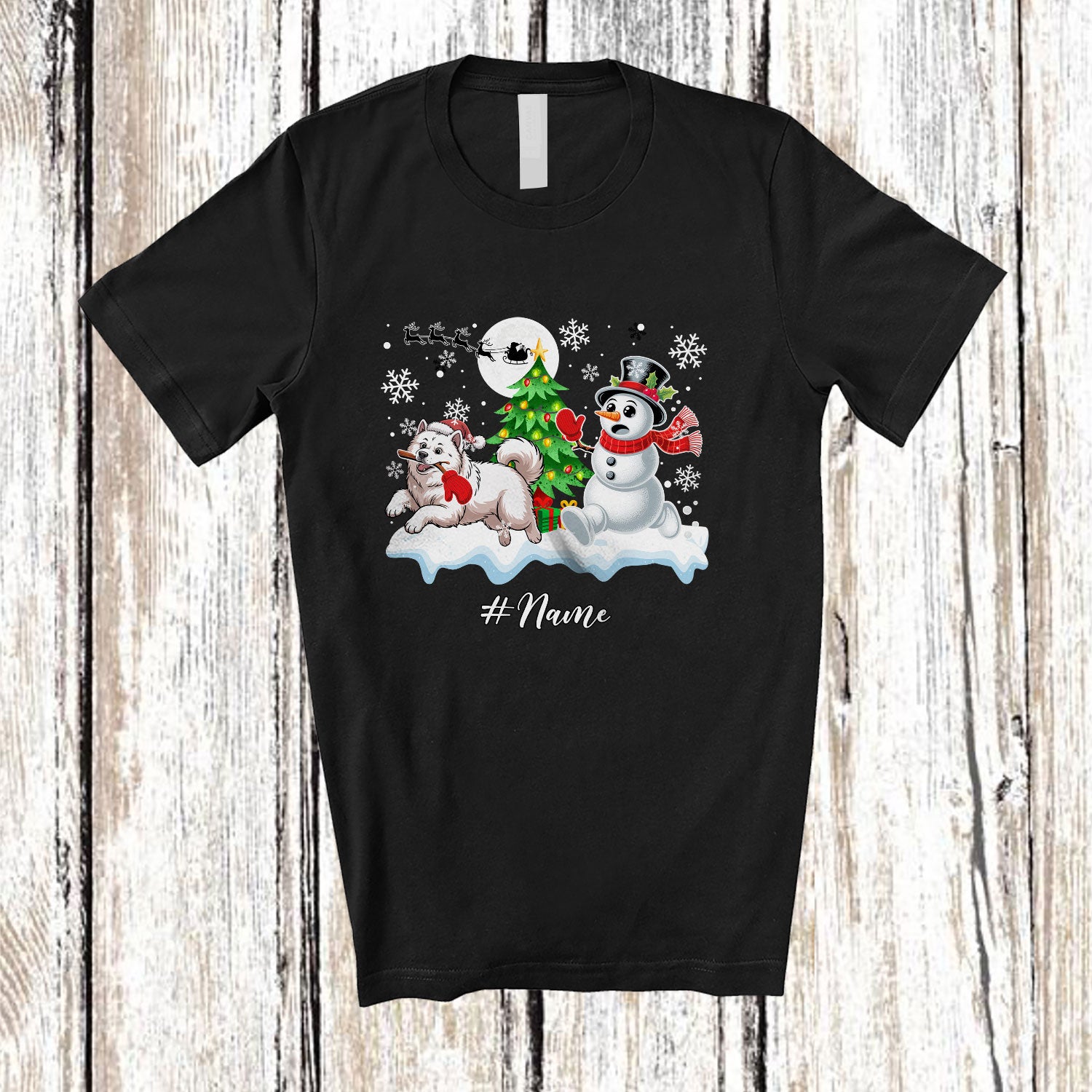 Personalized Custom Name Santa Samoyed Snowman; Lovely Christmas Tree Friends Family T-Shirt