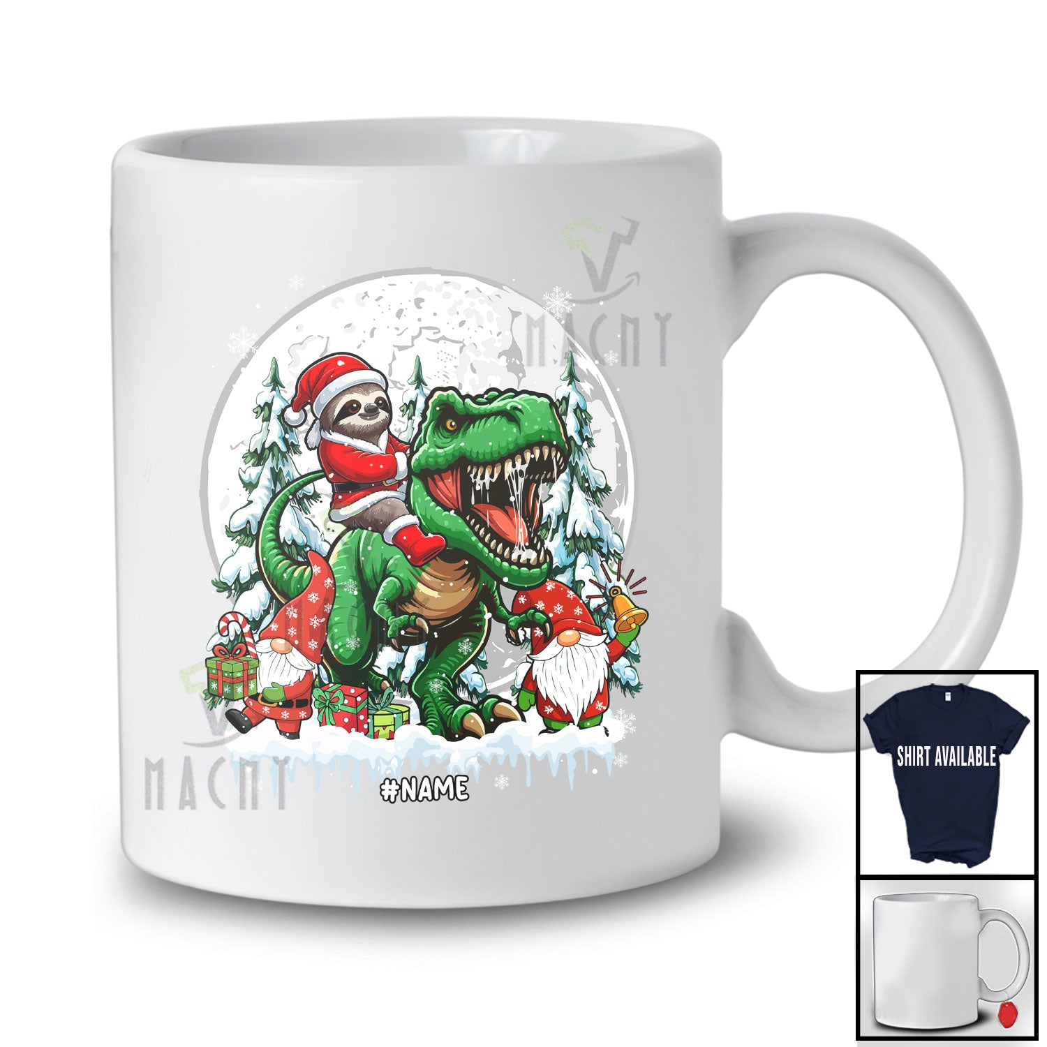 Personalized Custom Name Santa Sloth Riding T-Rex; Joyful Christmas Moon X-mas Pajama Family T-Shirt. This cotton t-shirt is a durable staple product with a classic fit. One of the most popular items, it has a relaxed style made for everyday and casual wear.