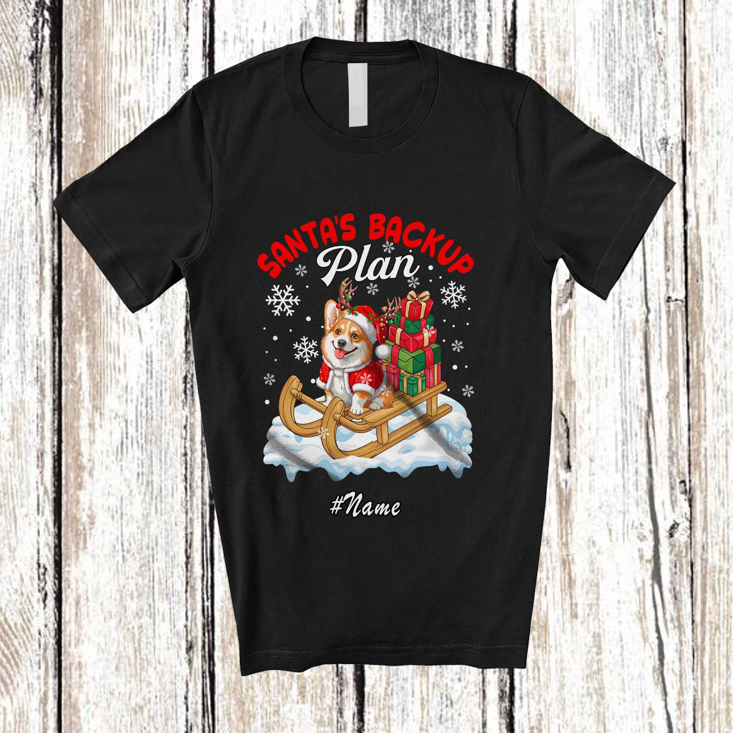 Personalized Custom Name Santa's Backup Plan; Lovely Christmas Santa Sleigh Reindeer Corgi T-Shirt