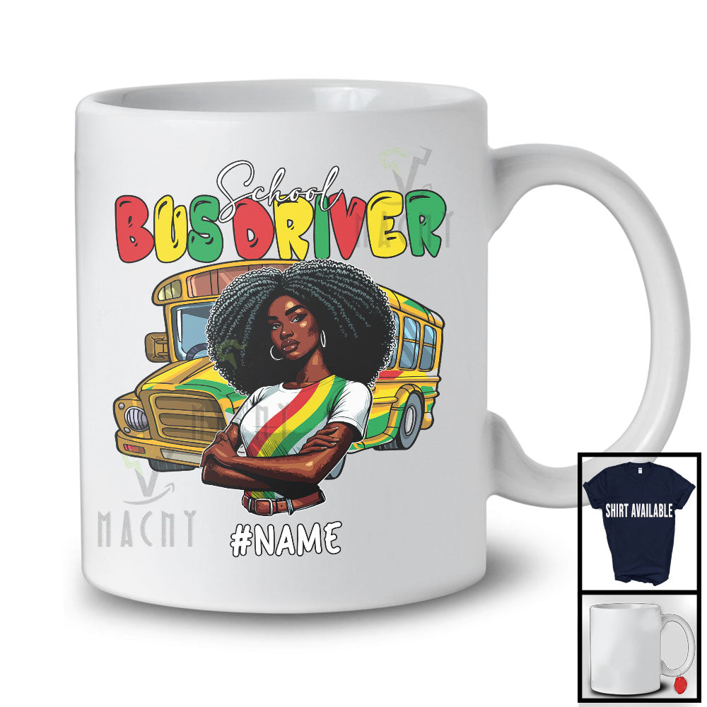 Personalized Custom Name School Bus Driver, Proud Juneteenth Afro Girl Women, Black African American T-Shirt