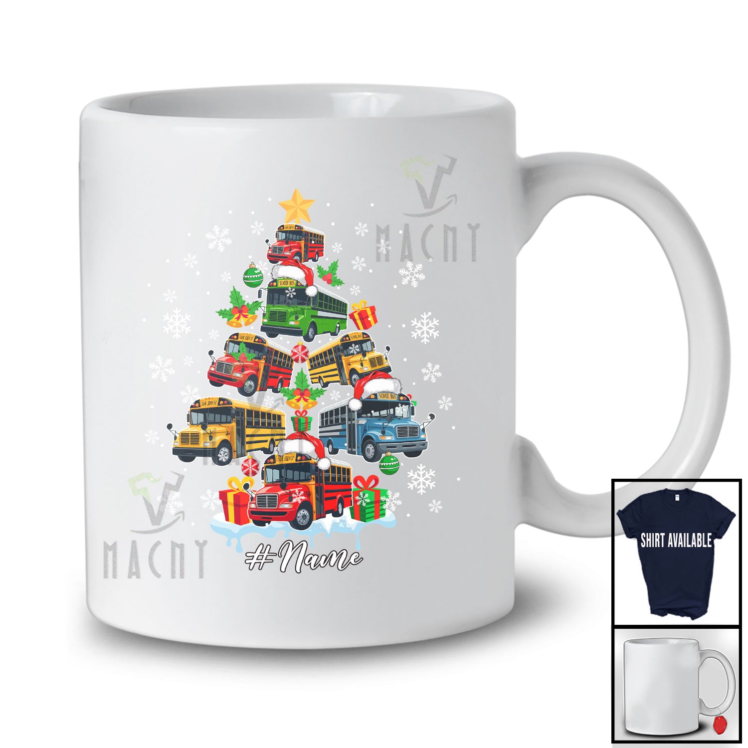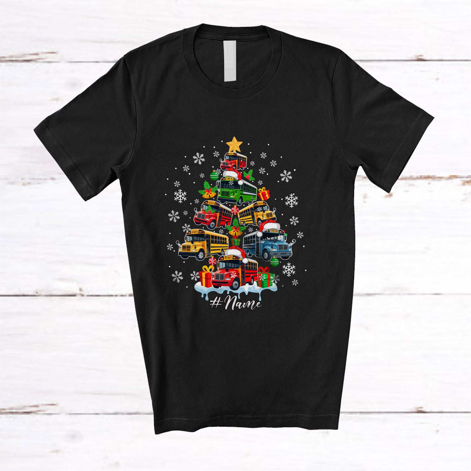 Personalized Custom Name School Bus Santa Christmas Tree; Joyful Driver Boys Family T-Shirt