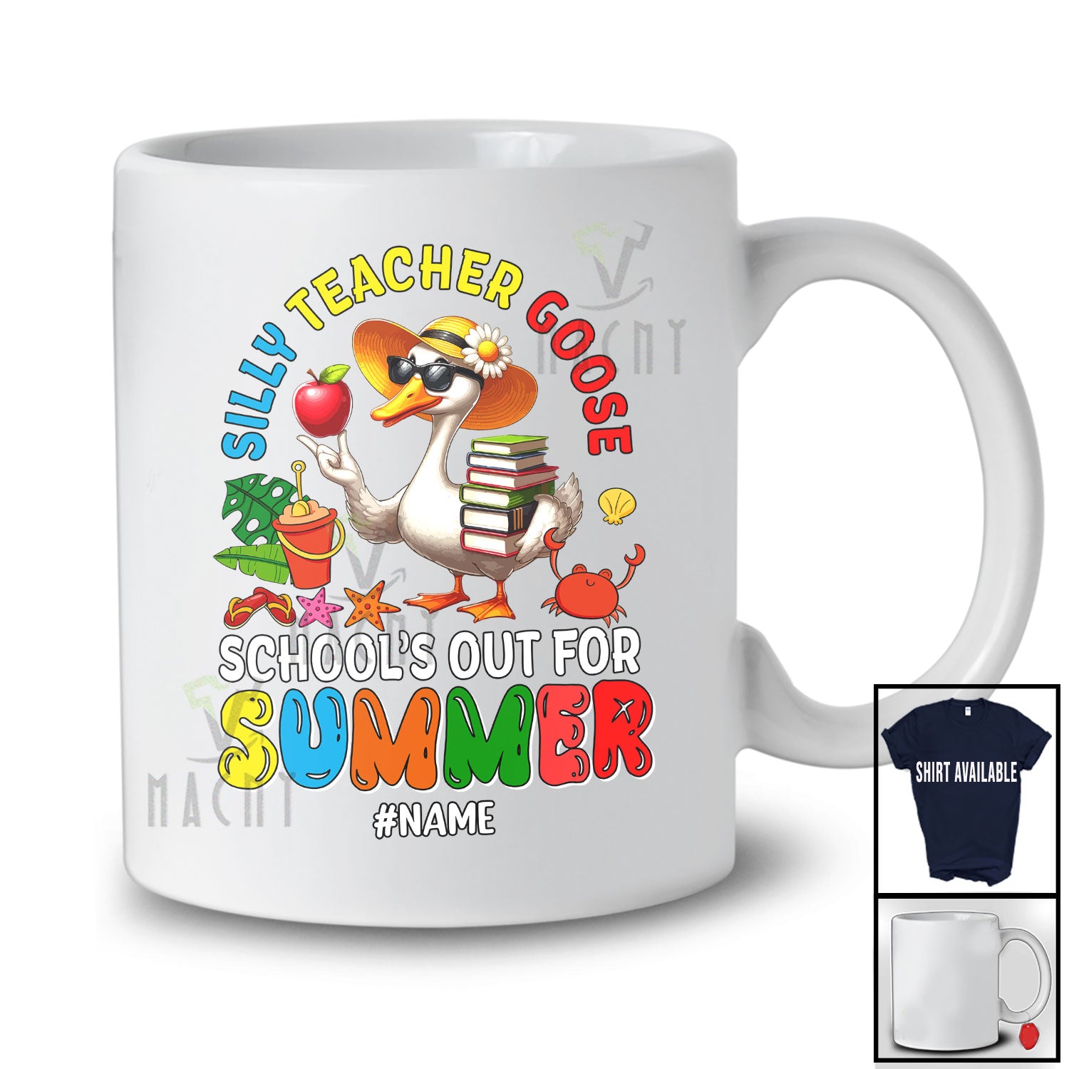 • Personalized Custom Name Silly Teacher Goose; Lovely Last Day of School Summer Vacation T-Shirt. This cotton t-shirt is a durable staple product with a classic fit. One of the most popular items, it has a relaxed style made for everyday and casual wear.