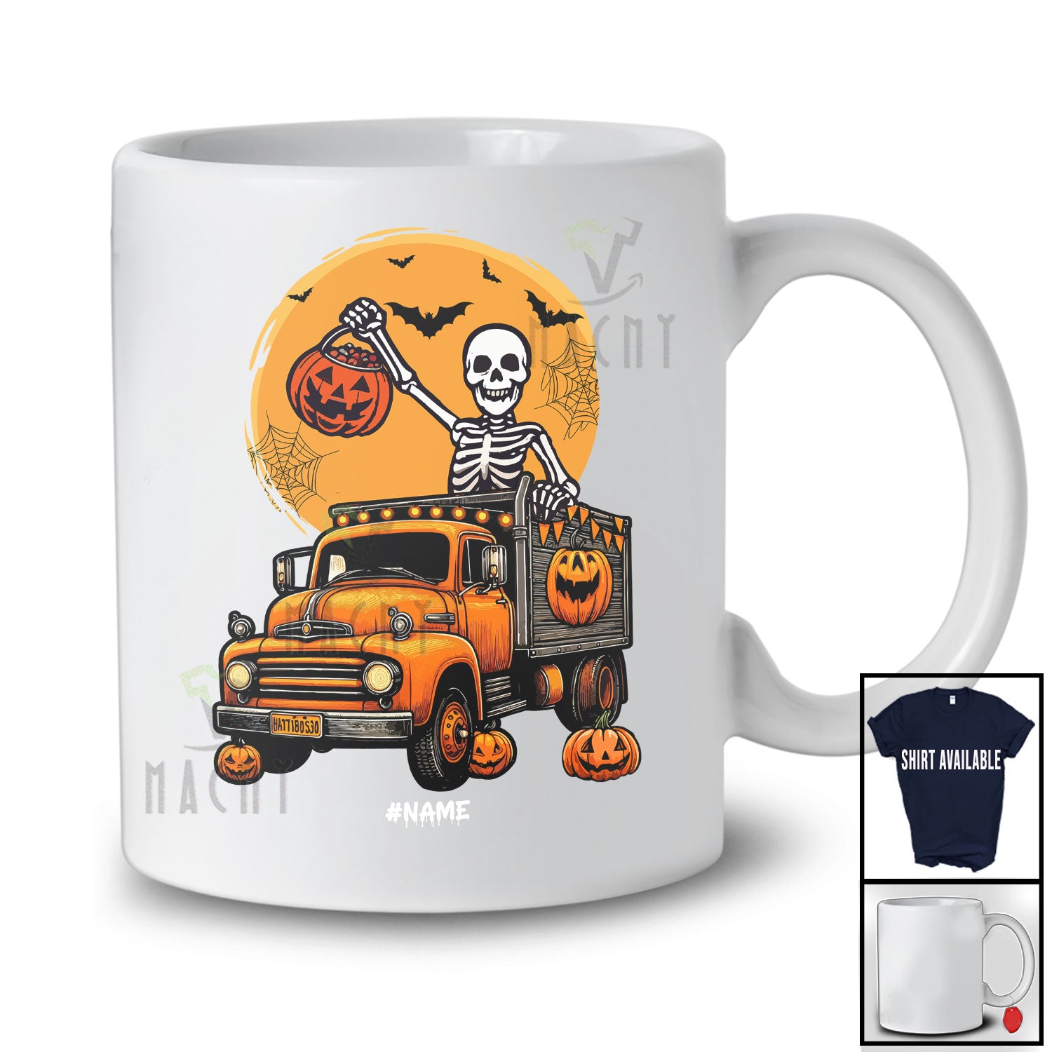 new MacnyStore - Personalized Custom Name Skeleton Driving Truck; Humorous Halloween Moon Candy Pumpkin T-Shirt – Macnystore