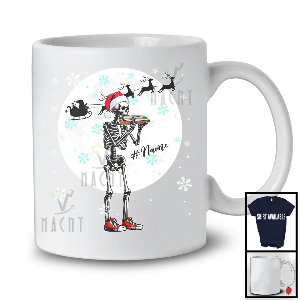 Personalized Custom Name Skeleton Harmonica Player; Joyful Christmas Moon; Musical Instruments T-Shirt