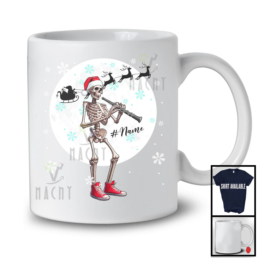 Personalized Custom Name Skeleton Oboe Player; Joyful Christmas Moon; Musical Instruments T-Shirt