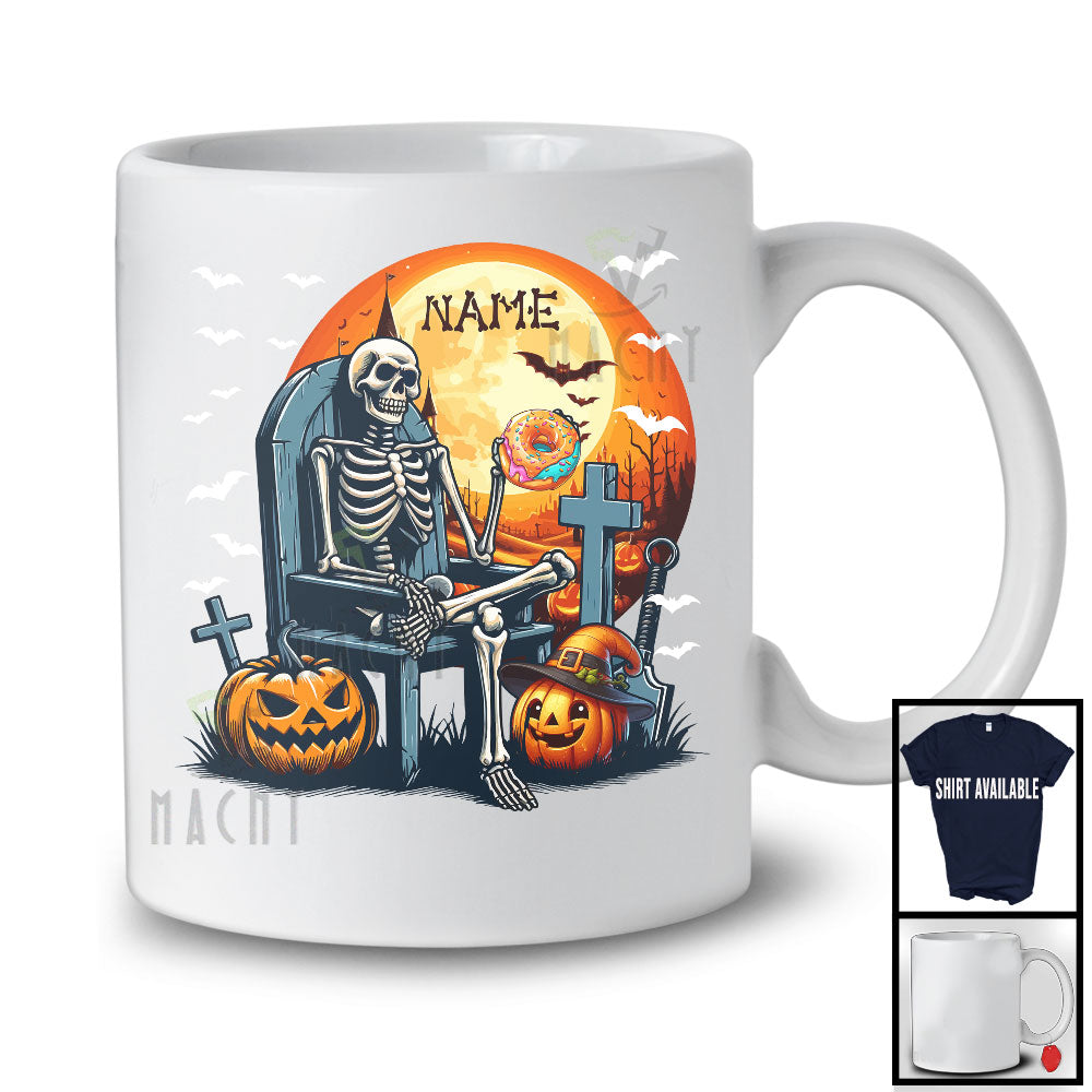 Personalized Custom Name Skeleton With Donut, Amazing Halloween Pumpkin, Food Lover T-Shirt