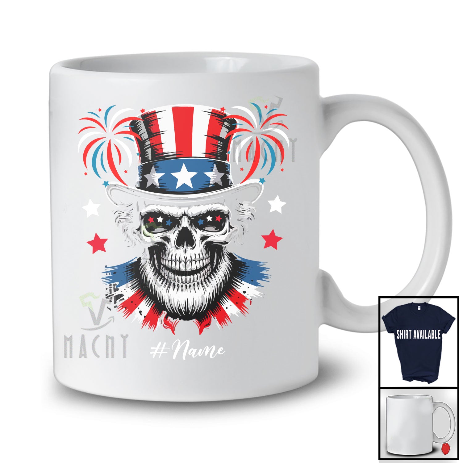 Personalized Custom Name Skull American Flag Hat; Awesome 4th Of July US Flag Patriotic T-Shirt. This cotton t-shirt is a durable staple product with a classic fit. One of the most popular items, it has a relaxed style made for everyday and casual wear.