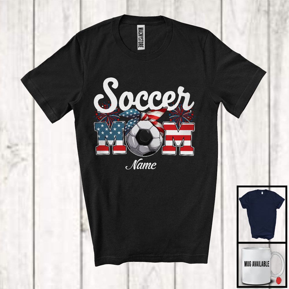 Personalized Custom Name Soccer Mom, Proud 4th Of July USA Flag Headband, Patriotic Family T-Shirt