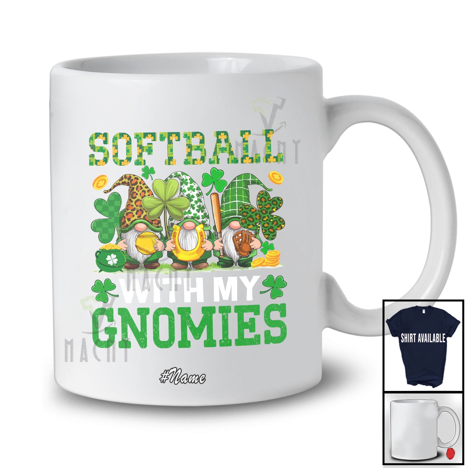 Personalized Custom Name Softball With My Gnomies; Joyful St. Patrick's Day Three Gnomes Player T-Shirt. This cotton t-shirt is a durable staple product with a classic fit. One of the most popular items, it has a relaxed style made for everyday and casual wear.