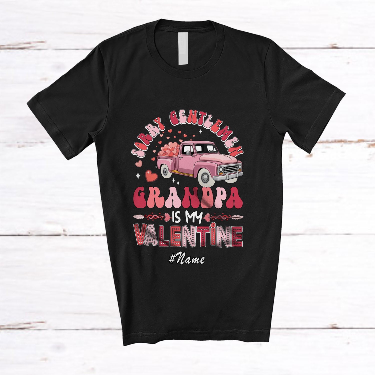 • Personalized Custom Name Sorry Gentlemen Grandpa Is My Valentine; Joyful Hearts On Pickup Truck T-Shirt. This cotton t-shirt is a durable staple product with a classic fit. One of the most popular items, it has a relaxed style made for everyday and casual wear.