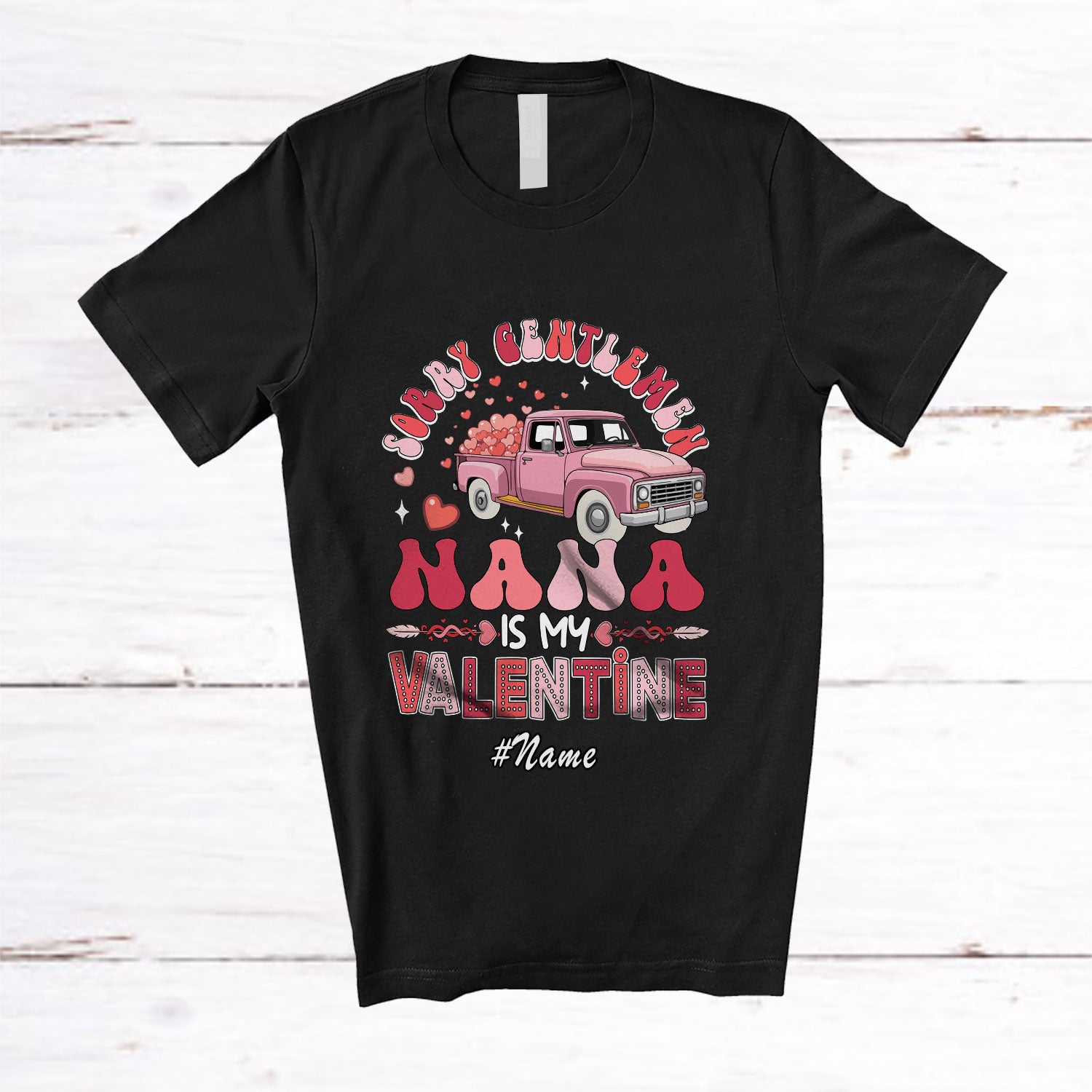 The Personalized Custom Name Sorry Gentlemen Nana Is My Valentine; Joyful Hearts On Pickup Truck T-Shirt is evocative, to say the least, but that's why you're drawn to it in the first place.
