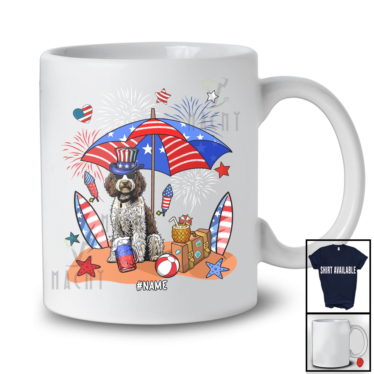 Personalized Custom Name Sproodle Relax Wait For 4th of July; Lovely US Flag Patriotic T-Shirt. This cotton t-shirt is a durable staple product with a classic fit. One of the most popular items, it has a relaxed style made for everyday and casual wear.