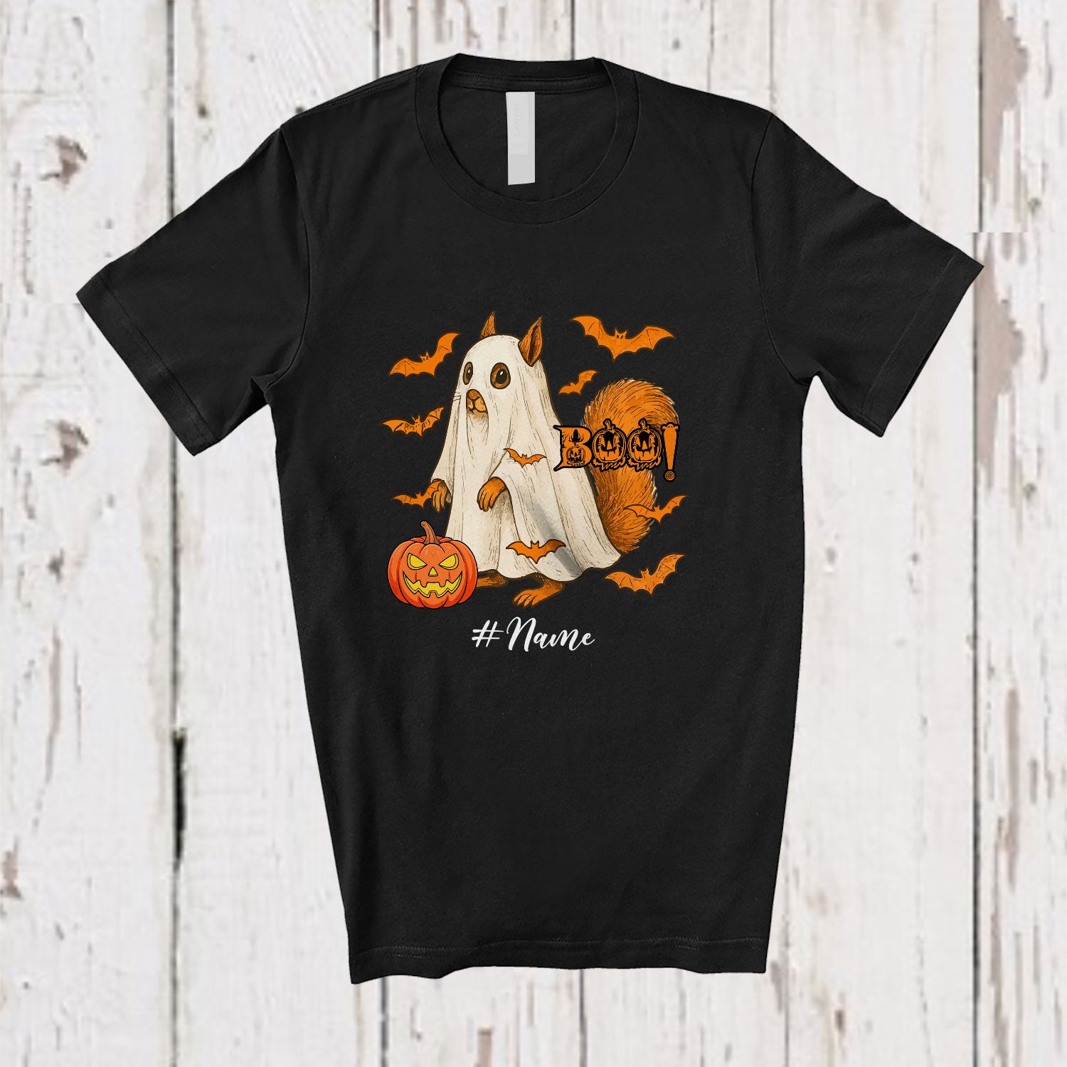Personalized Custom Name Squirrel Boo Ghost Cosplay; Horror Halloween Rodent Animal Lover T-Shirt