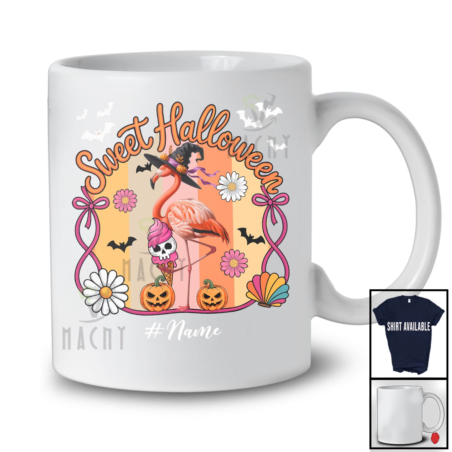 This Personalized Custom Name Sweet Halloween; Joyful Summer Witch Flamingo Eating Ice Cream T-Shirt is great idea gift for your family, friends in this birthday, christmas, mother's day, father's day, patrick's day or any holiday.