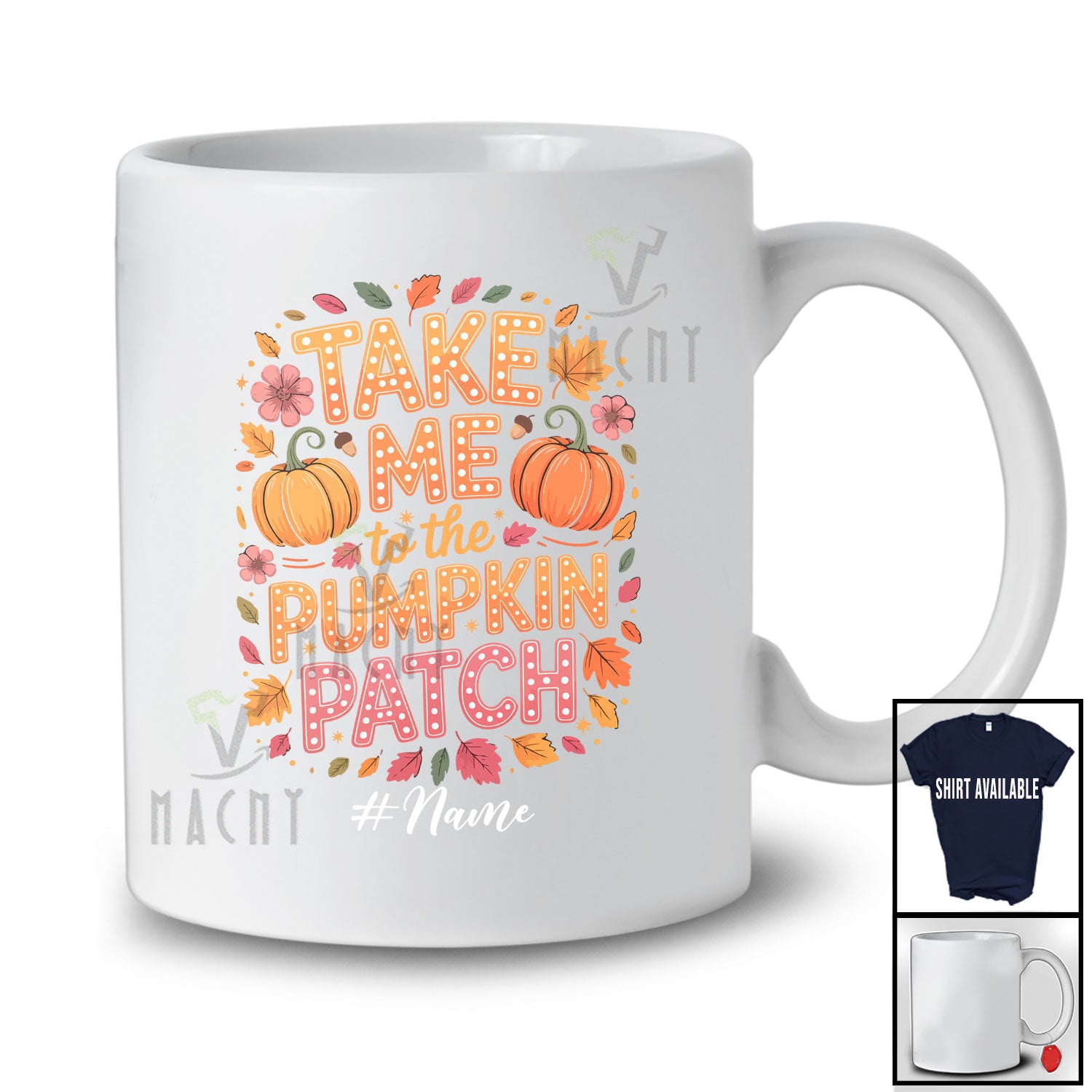 Personalized Custom Name Take To Pumpkin Patch; Joyful Thanksgiving Women Girl Fall Leaves T-Shirt