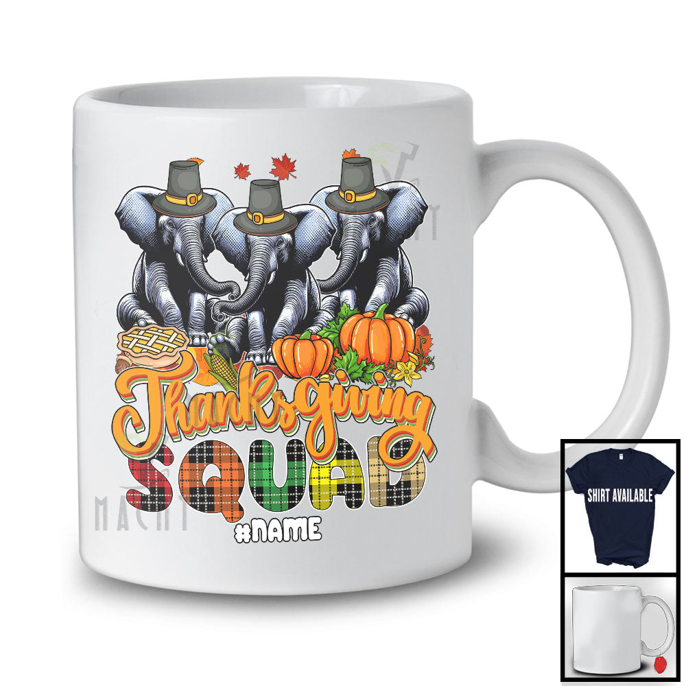 • Personalized Custom Name Thanksgiving Squad; Happy Plaid Three Pilgrim Elephants; Animal T-Shirt. This cotton t-shirt is a durable staple product with a classic fit. One of the most popular items, it has a relaxed style made for everyday and casual wear.