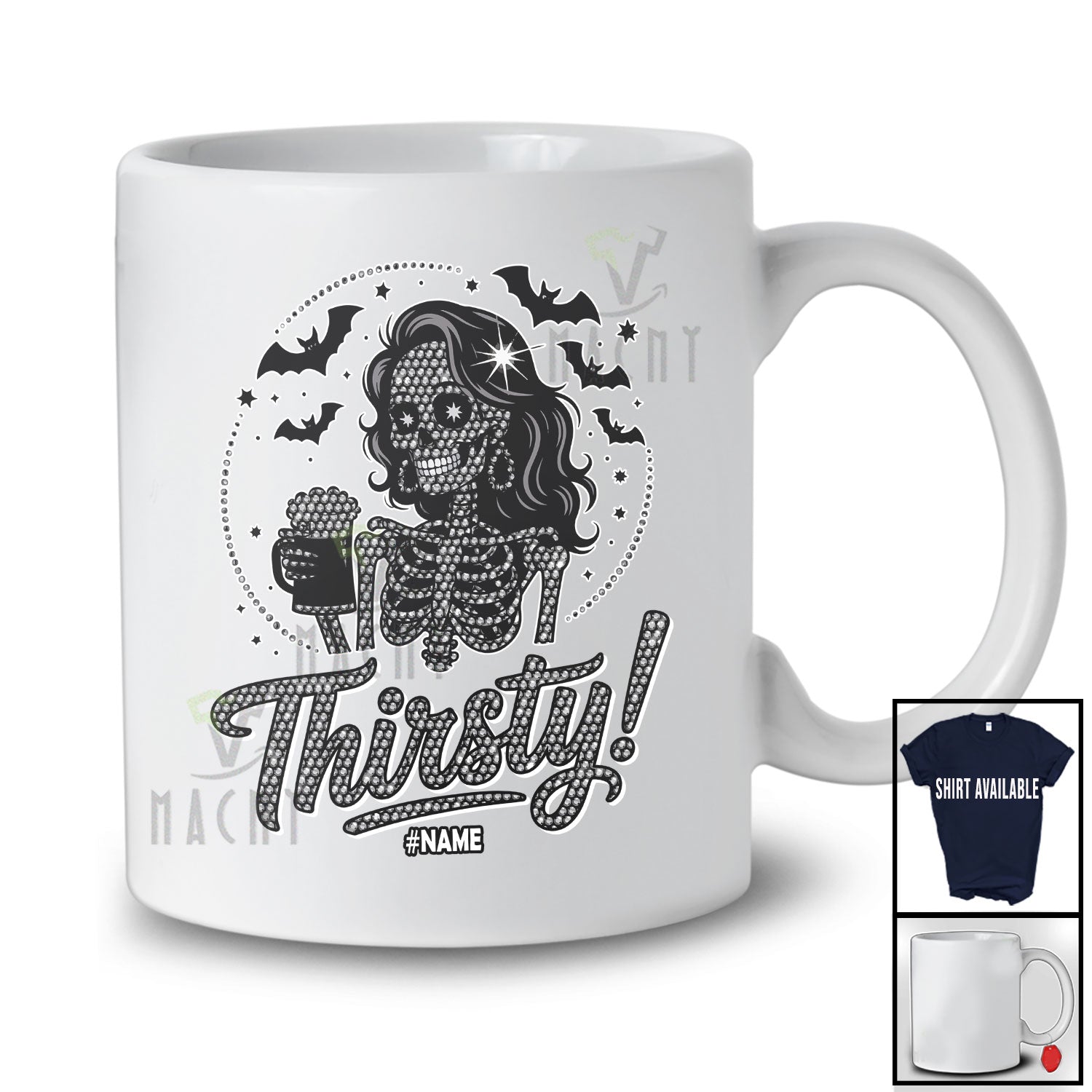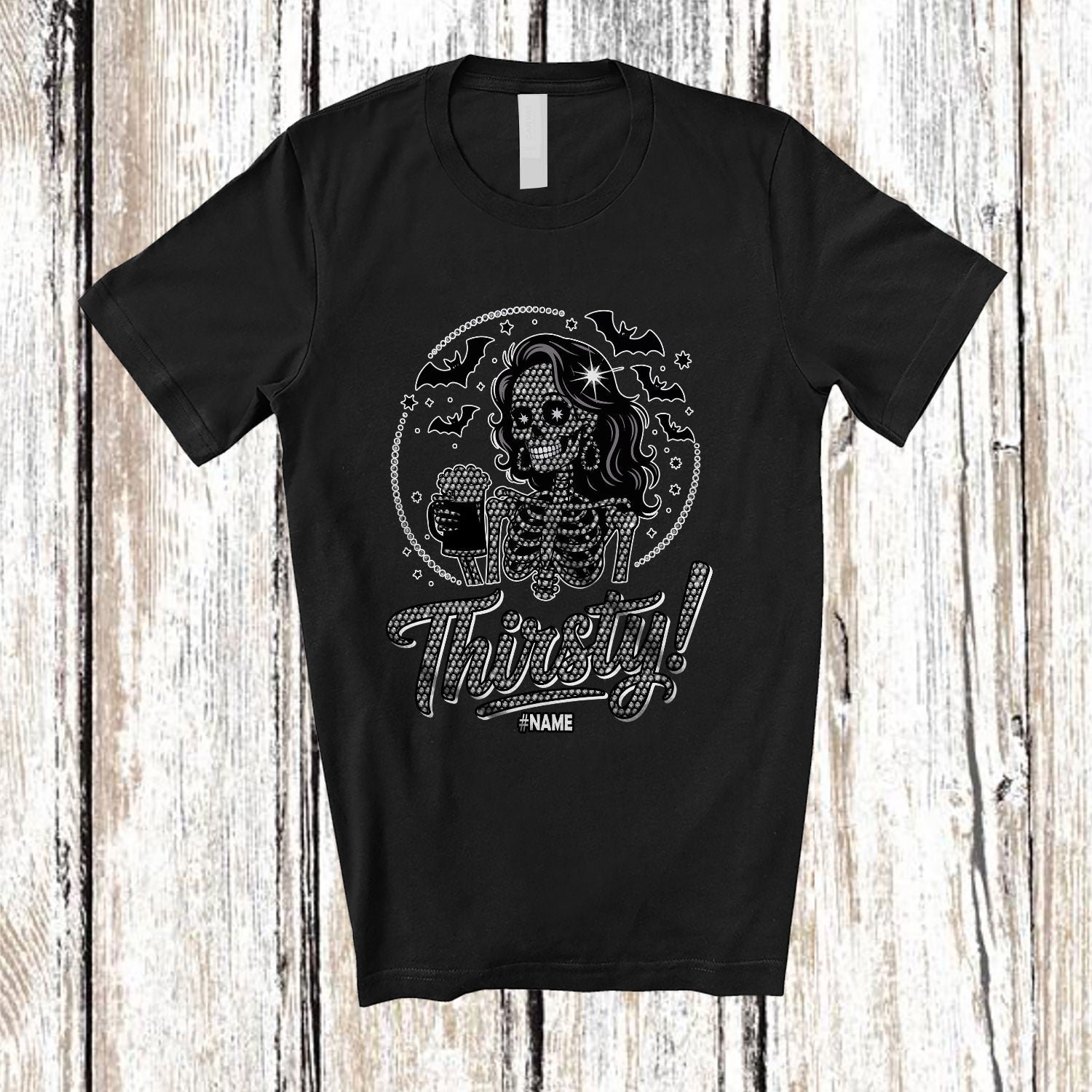 • The Personalized Custom Name Thirsty; Sarcastic Halloween Skeleton Women Drinking Beer; Drunker T-Shirt was built with people like you in mind. Something to keep you happy. Every. Single. Day.