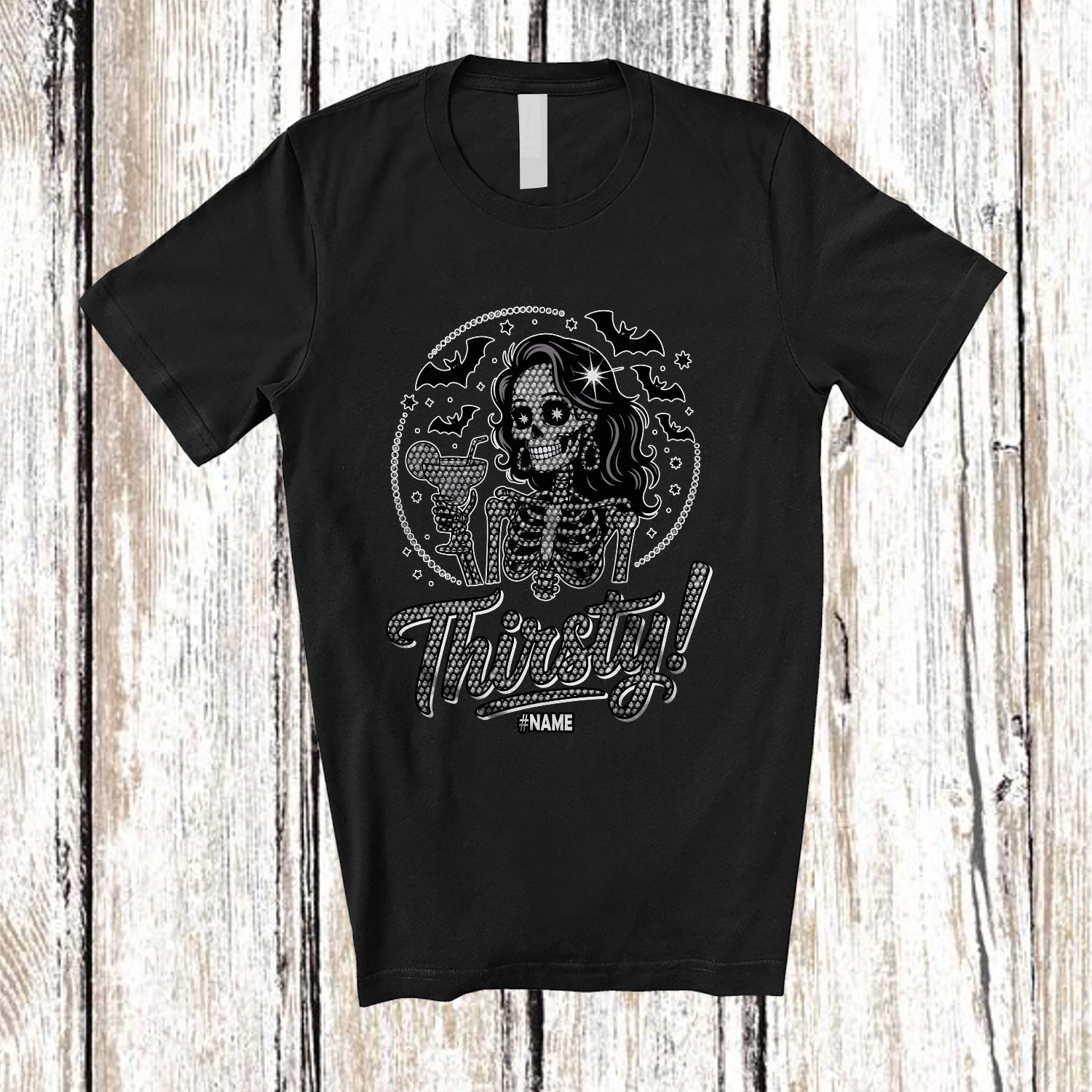 • The Personalized Custom Name Thirsty; Sarcastic Halloween Skeleton Women Drinking Cocktail; Drunker T-Shirt was built with people like you in mind. Something to keep you happy. Every. Single. Day.