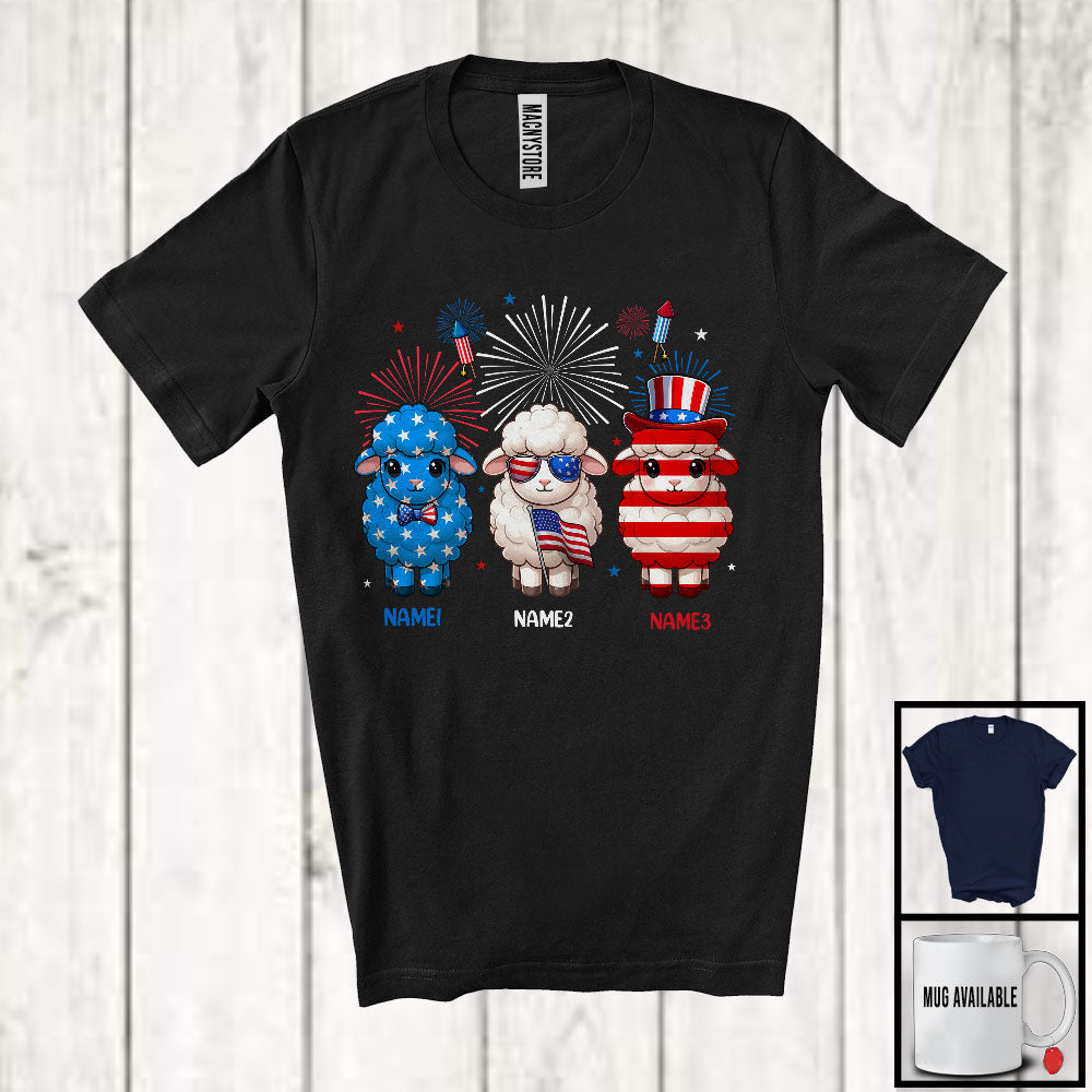 Personalized Custom Name Three Blue Red White Sheep, Adorable 4th Of July USA Flag Patriotic T-Shirt