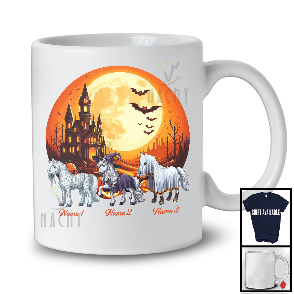 Personalized Custom Name Three Boo Witch Mummy Horses, Humorous Halloween Horse Farmer T-Shirt. This cotton t-shirt is a durable staple product with a classic fit. One of the most popular items, it has a relaxed style made for everyday and casual wear.