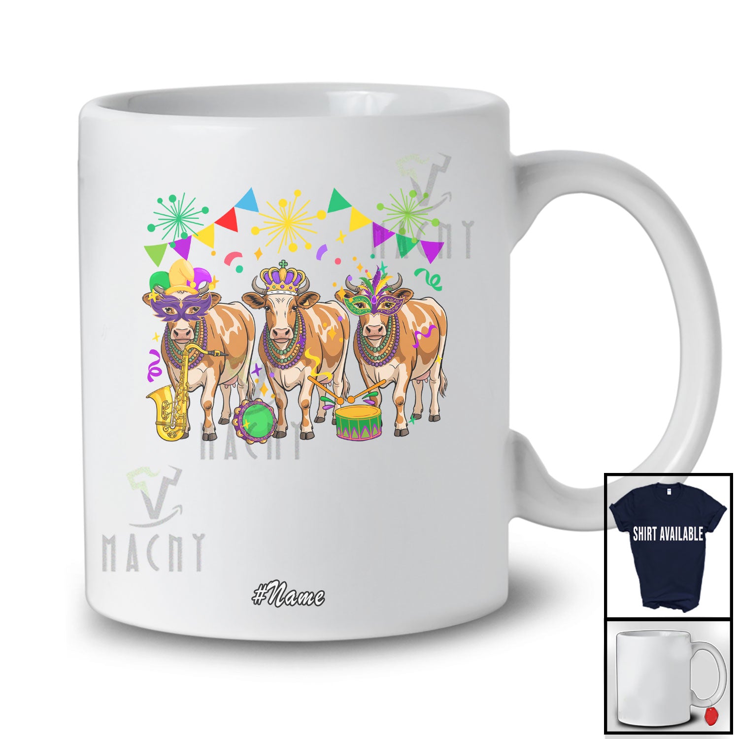 Personalized Custom Name Three Cow Parades; Joyful Mardi Gras Beads Farmer Animal; Carnival T-Shirt. This cotton t-shirt is a durable staple product with a classic fit. One of the most popular items, it has a relaxed style made for everyday and casual wear.