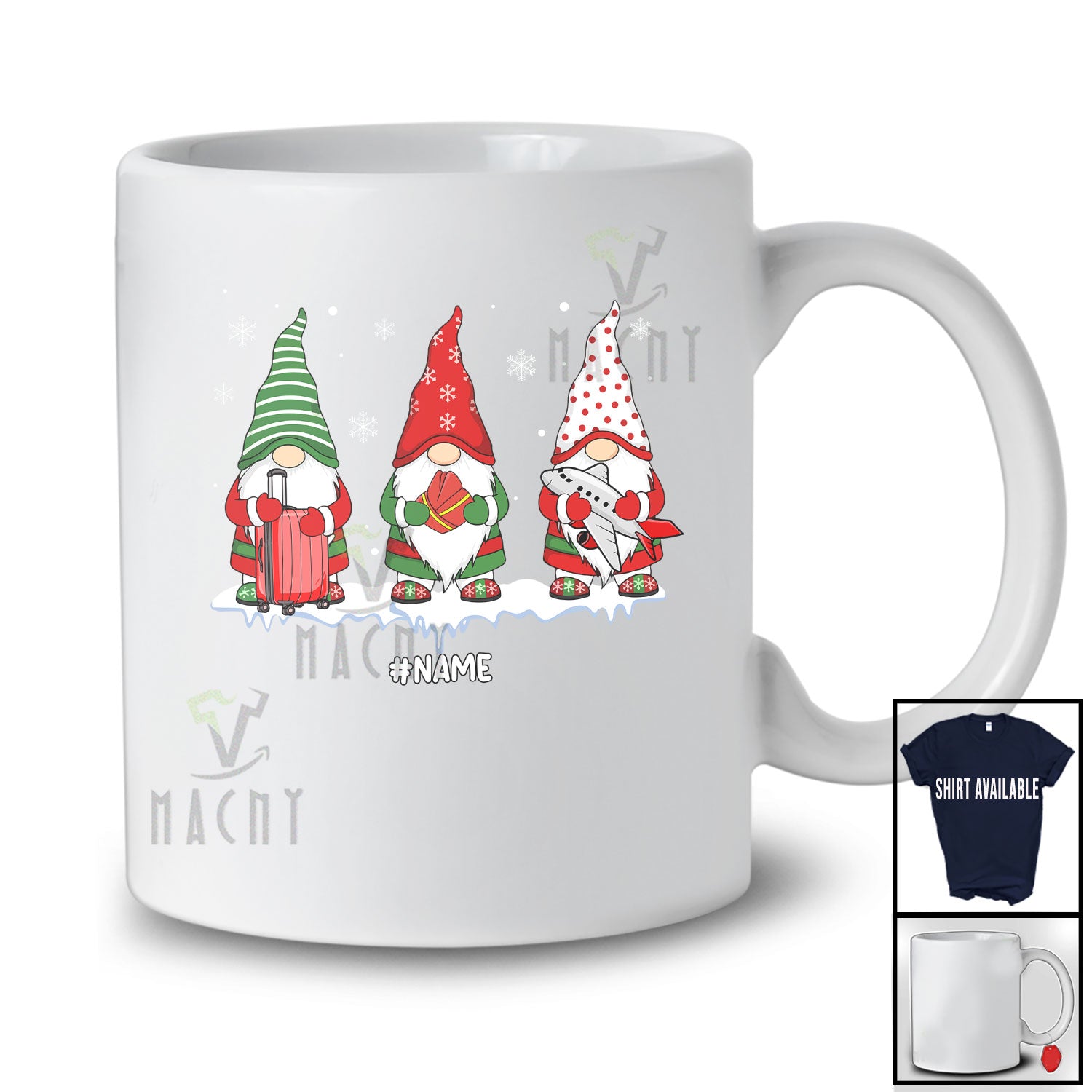 Personalized Custom Name Three Flight Attendant Gnomes Crew; Lovely Christmas Gnomies Jobs T-Shirt