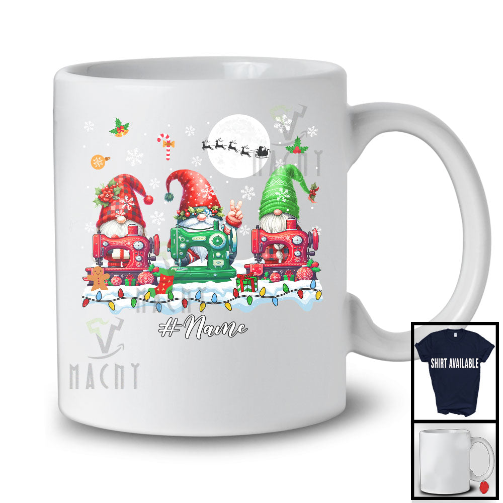 This Personalized Custom Name Three Gnomes Sewing Quilting; Merry Christmas Lights Moon Snowing T-Shirt is great idea gift for your family, friends in this birthday, christmas, mother's day, father's day, patrick's day or any holiday.