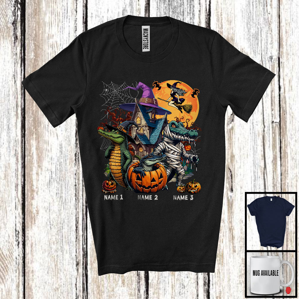 Personalized Custom Name Three Mummy Witch Alligator, Scary Halloween Animal Lover, Pumpkin T-Shirt