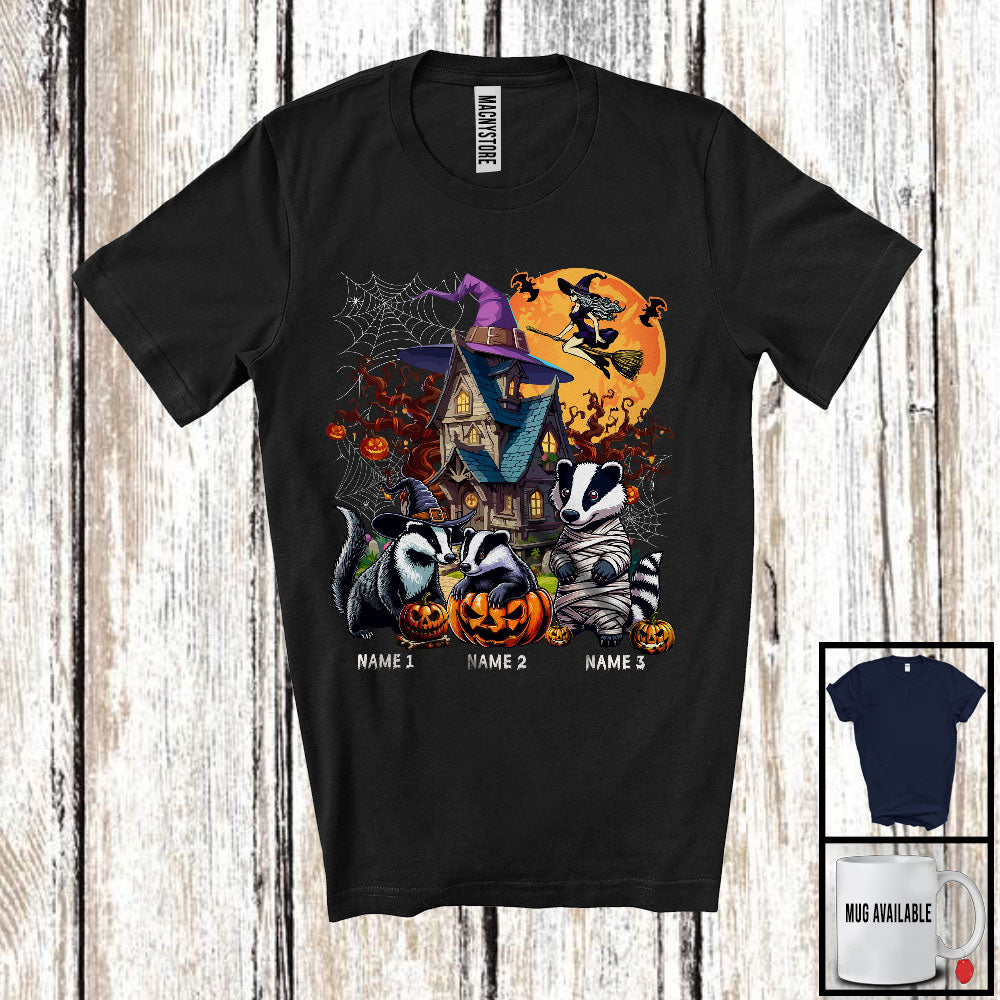 Personalized Custom Name Three Mummy Witch Badger, Scary Halloween Wild Animal, Pumpkin T-Shirt