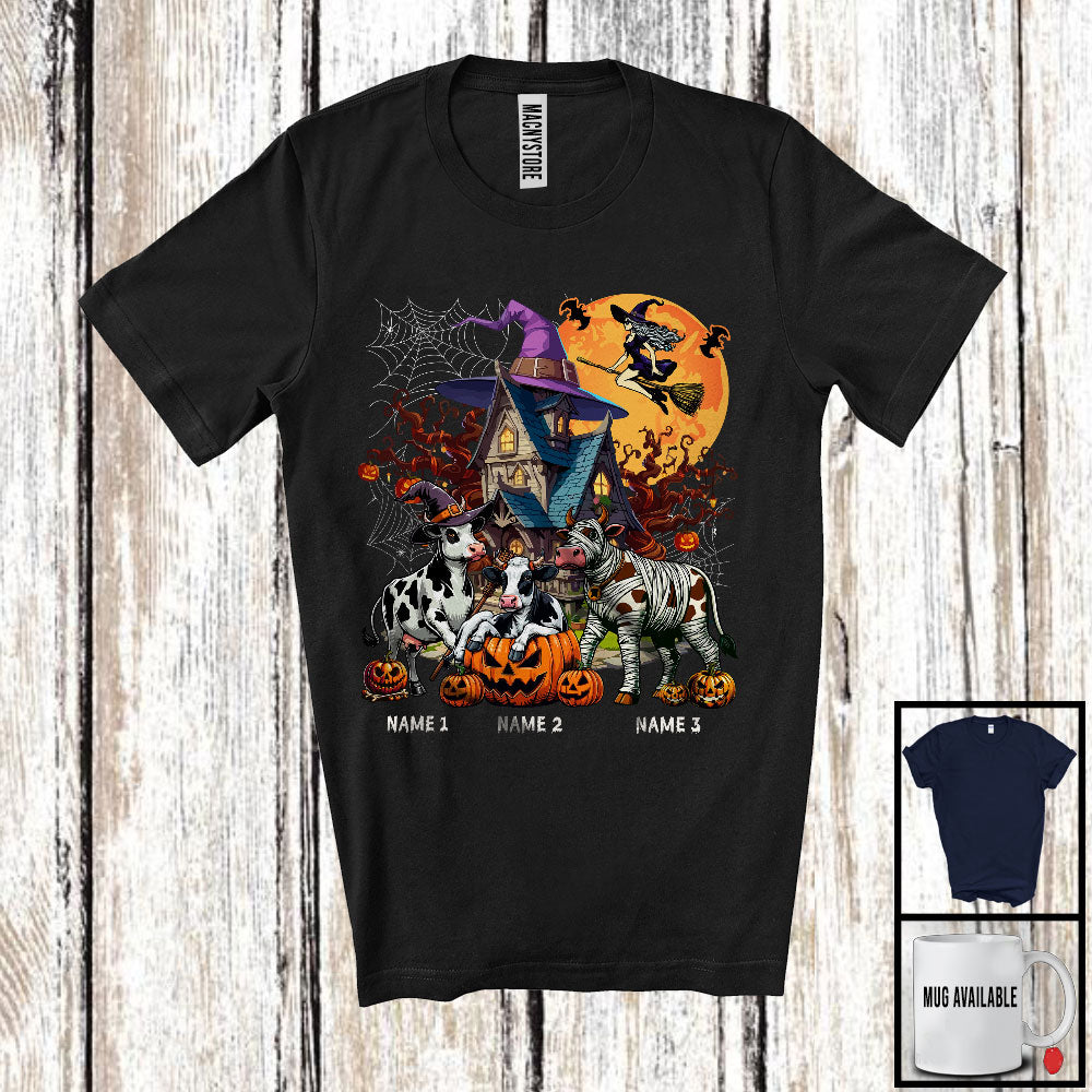Personalized Custom Name Three Mummy Witch Cow, Scary Halloween Farm Farmer, Pumpkin T-Shirt