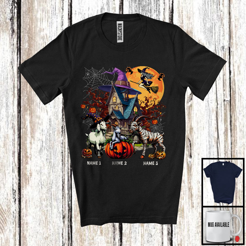 Personalized Custom Name Three Mummy Witch Goat, Scary Halloween Farm Farmer, Pumpkin T-Shirt