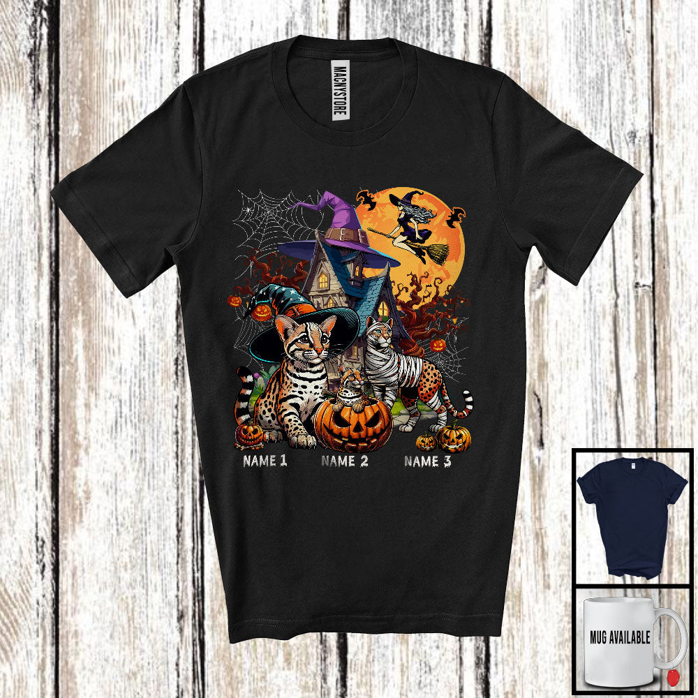 Personalized Custom Name Three Mummy Witch Ocelot, Scary Halloween Animal Lover, Pumpkin T-Shirt