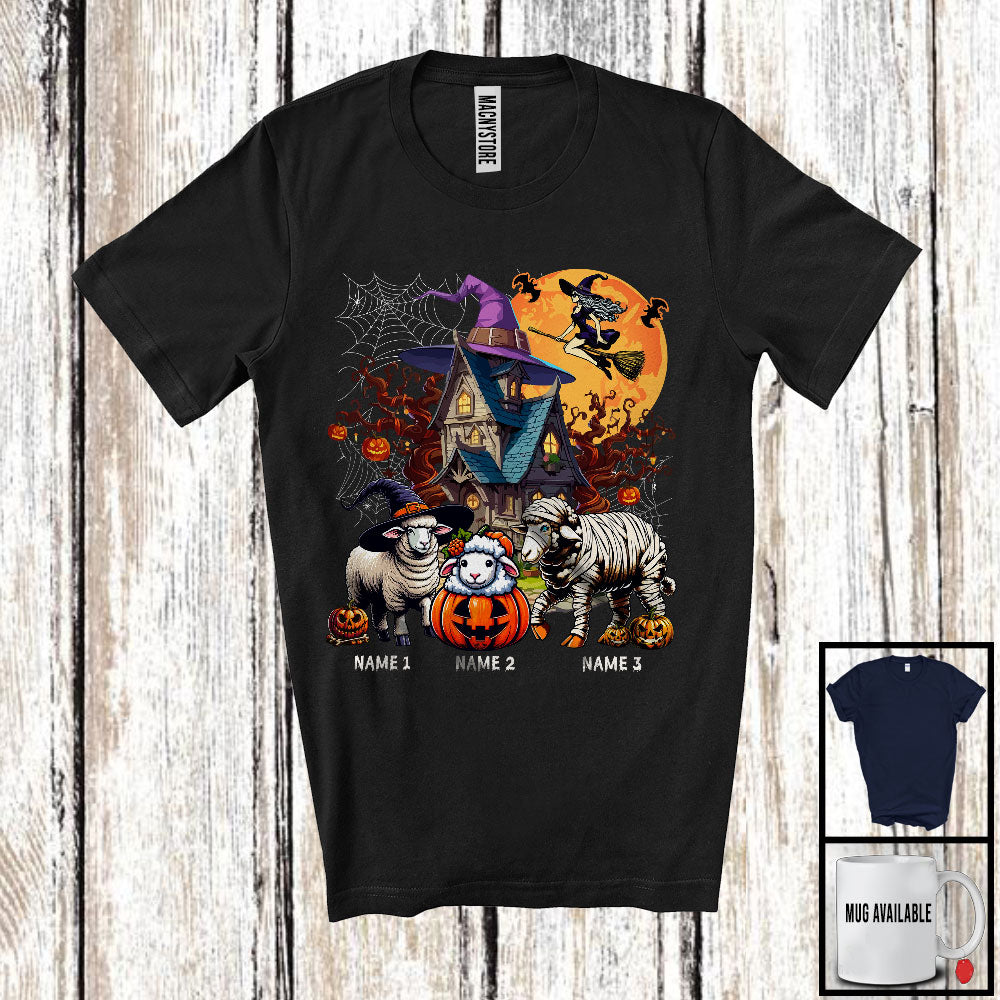 new MacnyStore - Personalized Custom Name Three Mummy Witch Sheep, Scary Halloween Farm Farmer, Pumpkin T-Shirt – Macnystore
