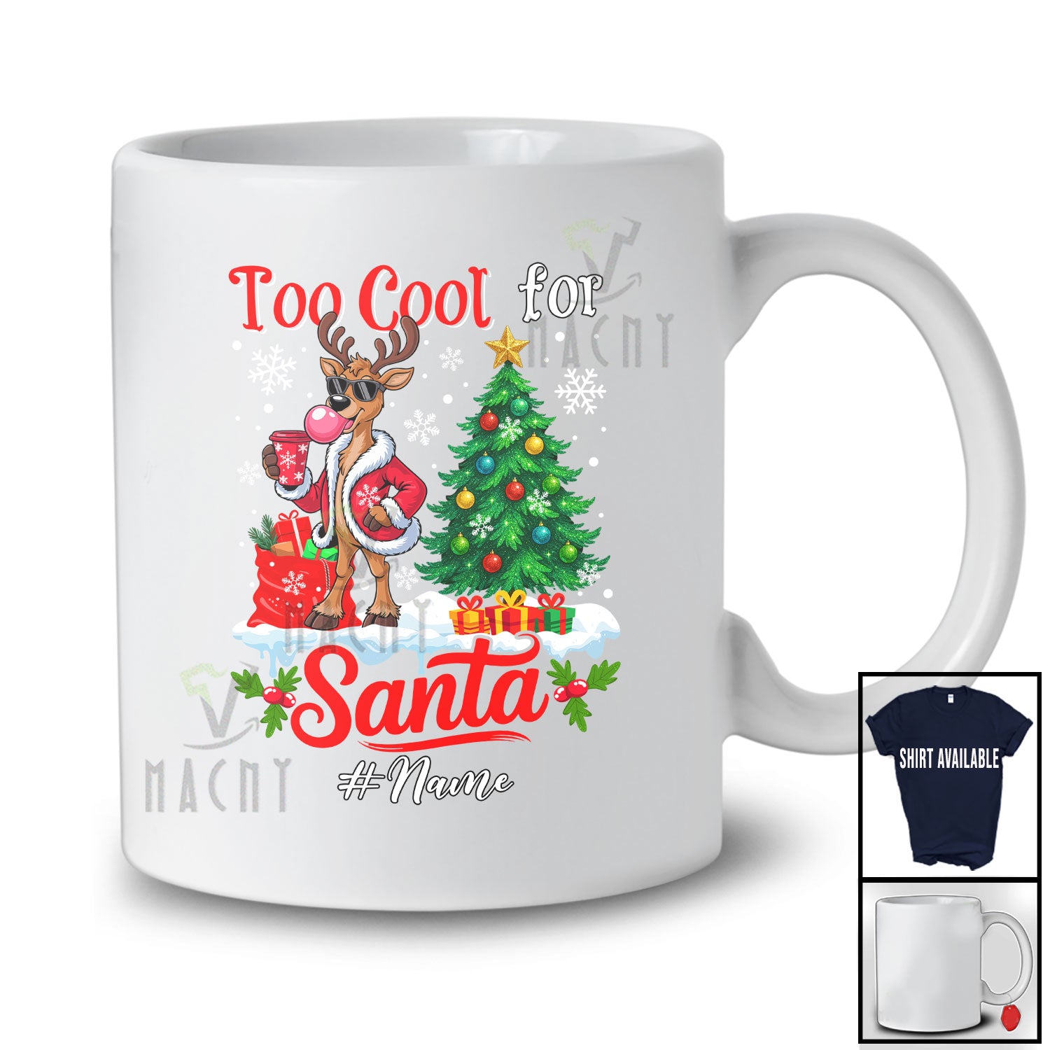 Personalized Custom Name Too Cool For Santa; Merry Christmas Reindeer Sunglasses Drink Coffee T-Shirt