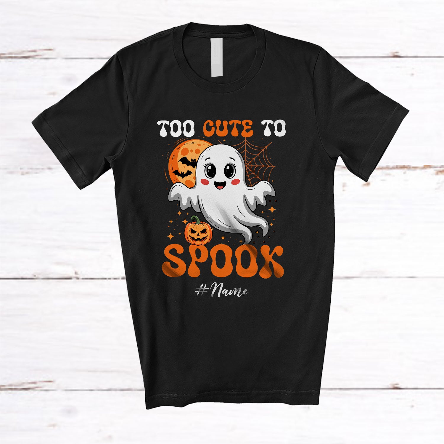 Personalized Custom Name Too Cute To Spook; Lovely Halloween Moon Ghost Boo; Family T-Shirt