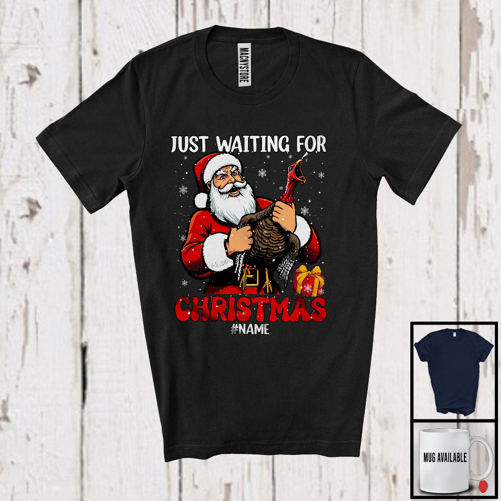 Personalized Custom Name Waiting For Christmas; Humorous X-mas Thanksgiving Turkey Santa T-Shirt