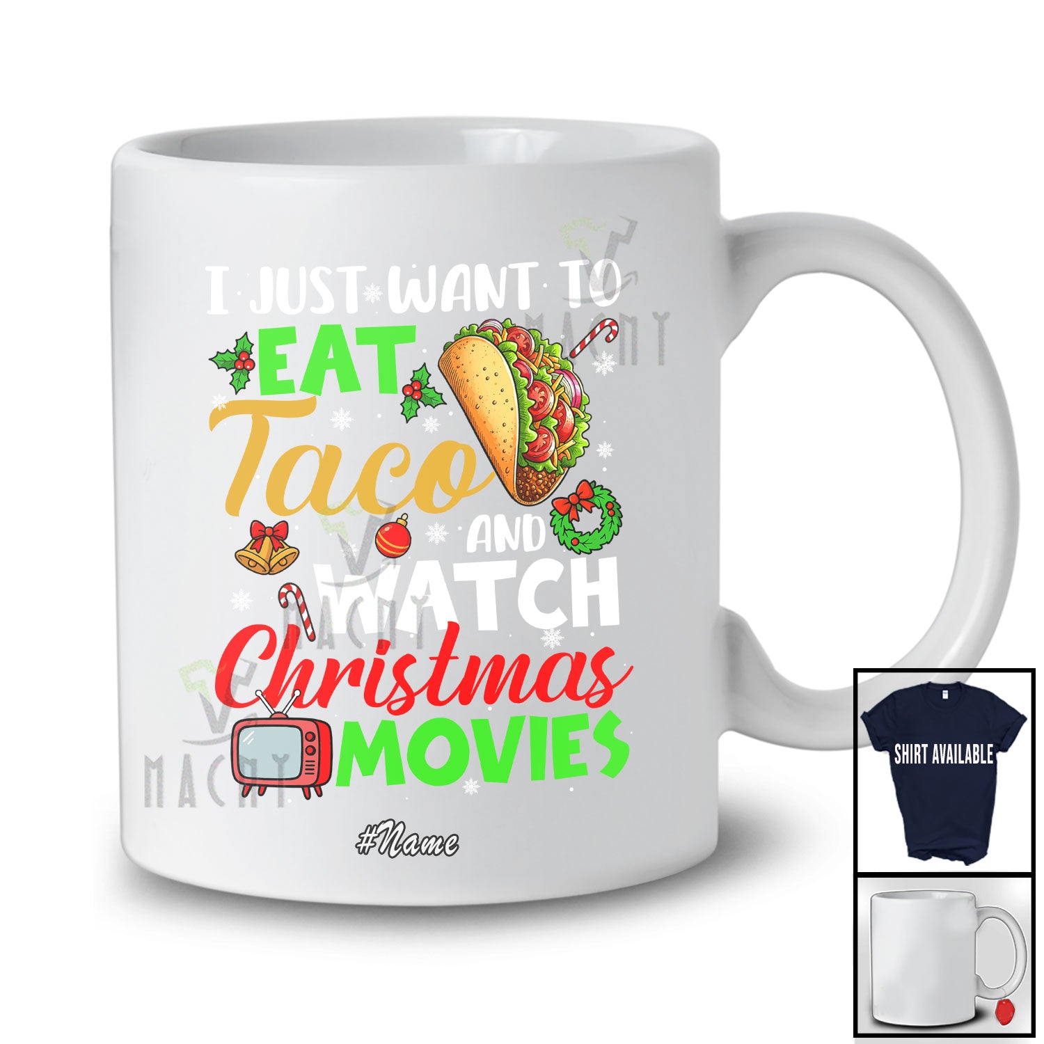 • Personalized Custom Name Want To Eat Taco Watch Christmas Movies; Amusing Family T-Shirt. This cotton t-shirt is a durable staple product with a classic fit. One of the most popular items, it has a relaxed style made for everyday and casual wear.