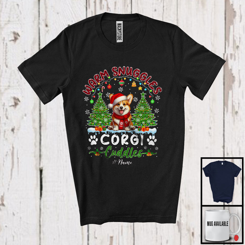 new MacnyStore - Personalized Custom Name Warm Snuggles Corgi Cuddles; Fantastic Christmas Lights Tree Plaid T-Shirt – Macnystore