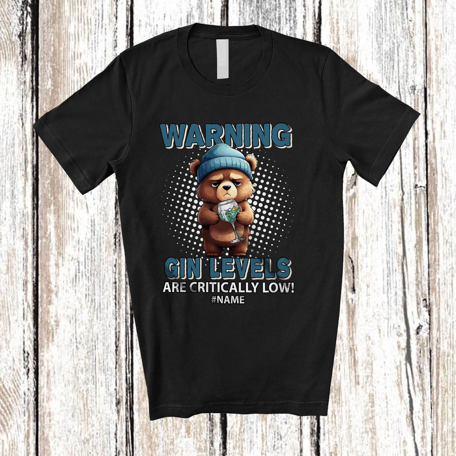 Personalized Custom Name Warning Gin Levels; Lovely Bear Drinking; Boys Men Drunker T-Shirt