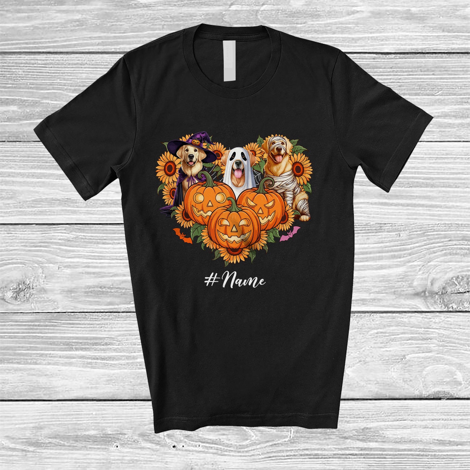 • Personalized Custom Name Witch Boo Mummy Golden Retriever Heart; Lovely Halloween Pumpkin T-Shirt. This cotton t-shirt is a durable staple product with a classic fit. One of the most popular items, it has a relaxed style made for everyday and casual wear.