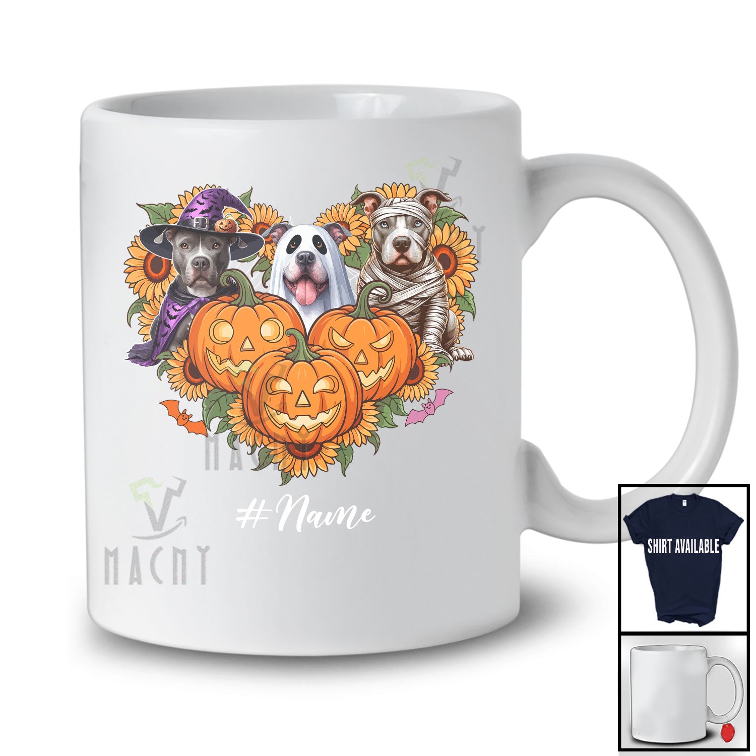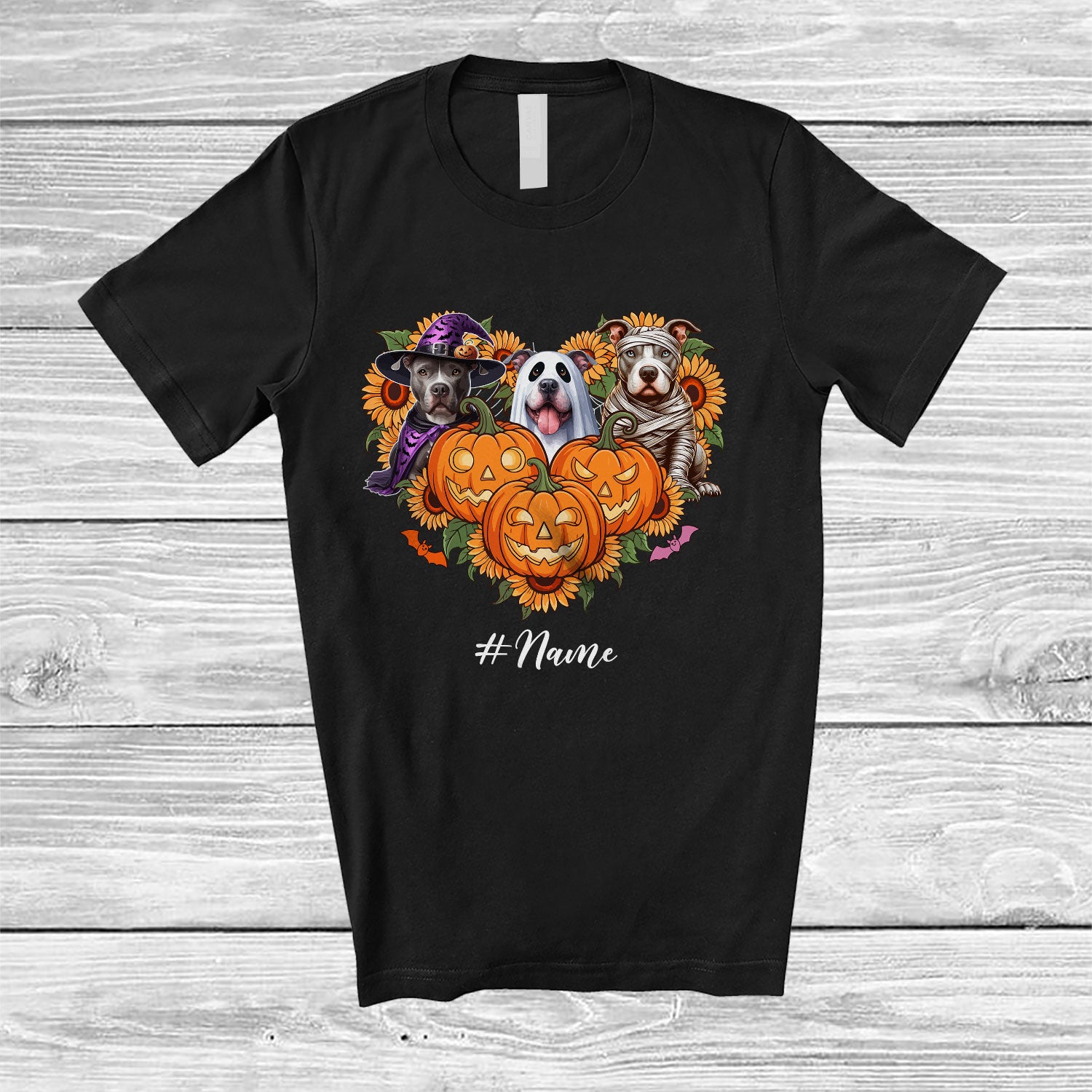 • Personalized Custom Name Witch Boo Mummy Pit Bull Heart; Lovely Halloween Sunflower Pumpkin T-Shirt. This cotton t-shirt is a durable staple product with a classic fit. One of the most popular items, it has a relaxed style made for everyday and casual wear.