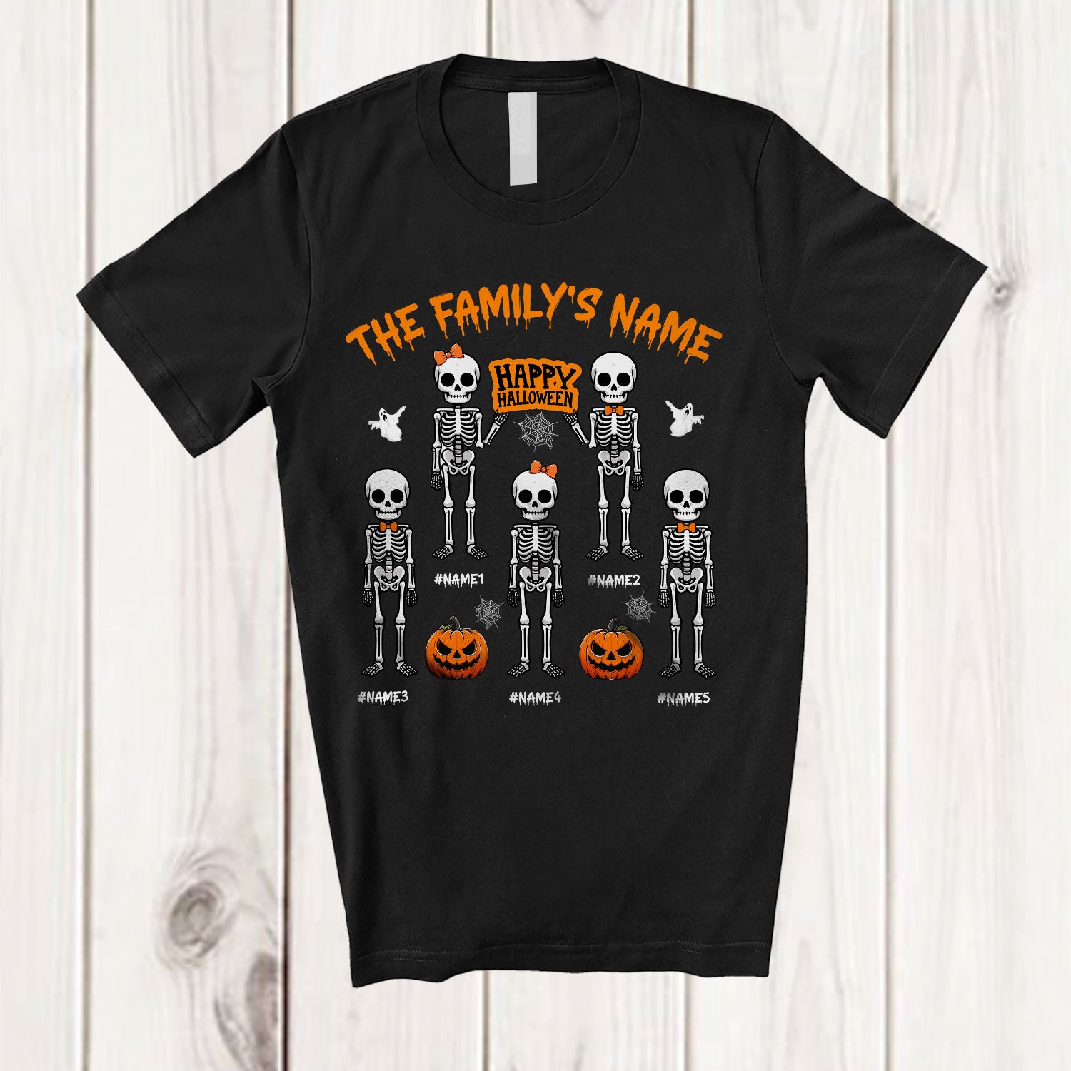 Personalized Custom The Family's Name; Humorous Halloween Skeleton Pumpkin; Family Group T-Shirt