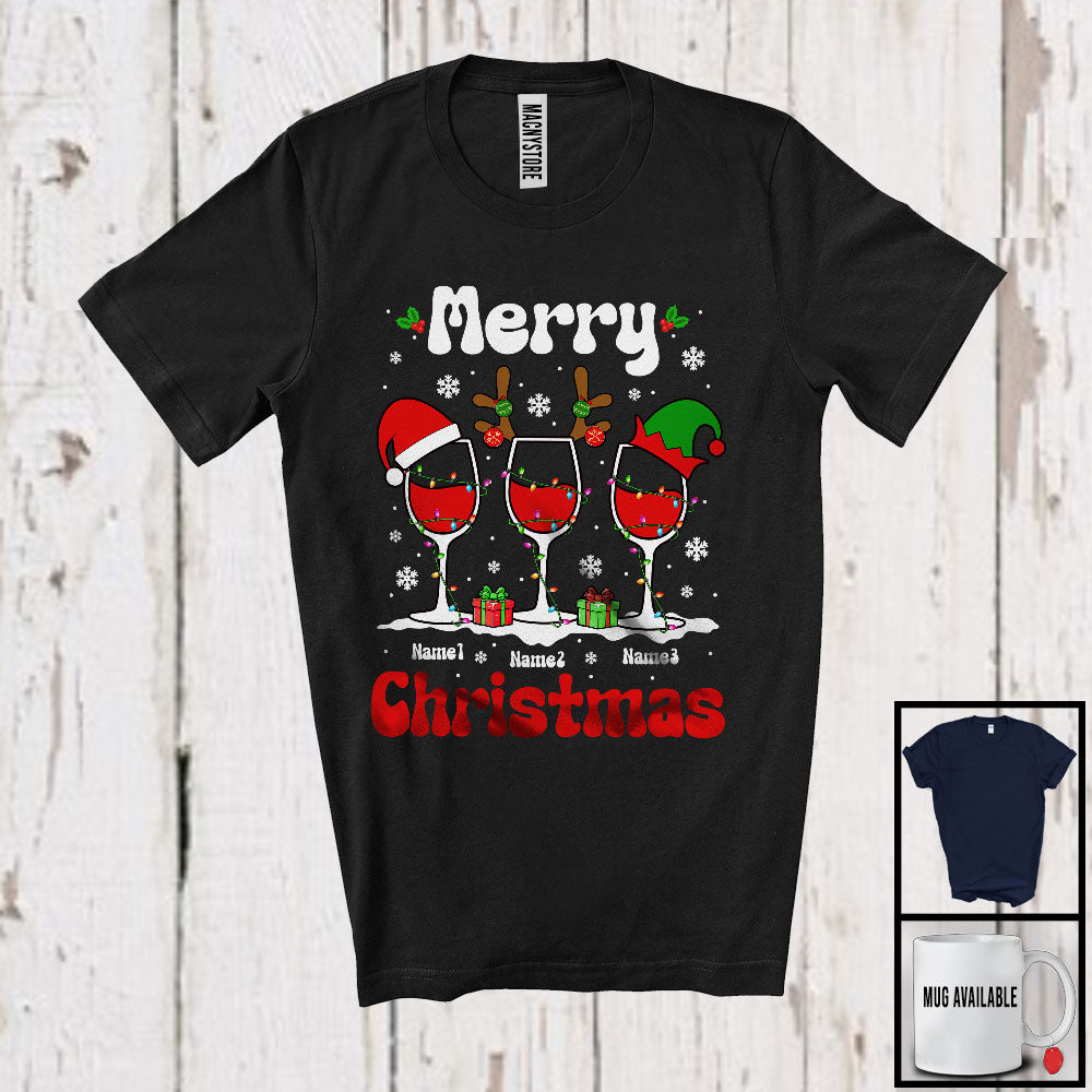 Personalized Custom Three Names Merry Christmas; Cheerful Three Wine Glasses; Drinking T-Shirt