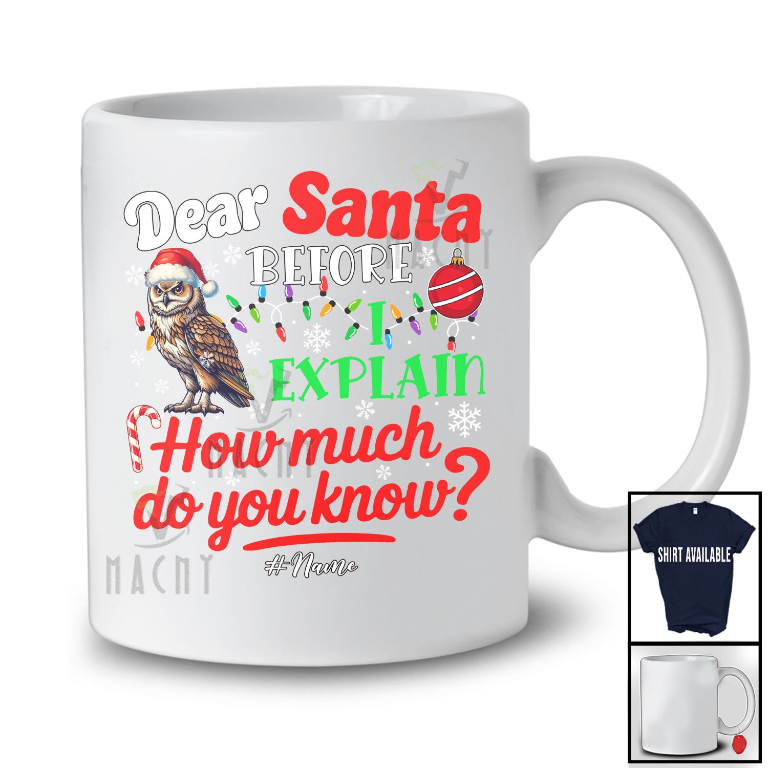 The Personalized Dear Santa How Much Do You Know; Lovely Christmas Custom Name Santa Owl T-Shirt destined to impress, and priced at only $12.95, for a limited time.