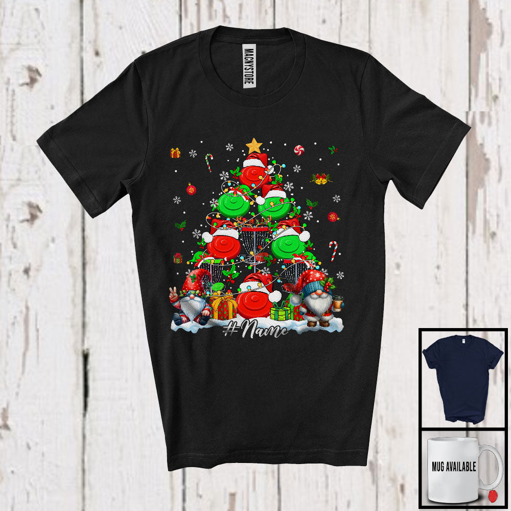 Every product is unique, just like you. If you're looking for a product that fits the mold of your life, the Personalized Disc Golf Equipment As Christmas Tree; Lovely Gnomes; Custom Name Sport Player T-Shirt is for you.